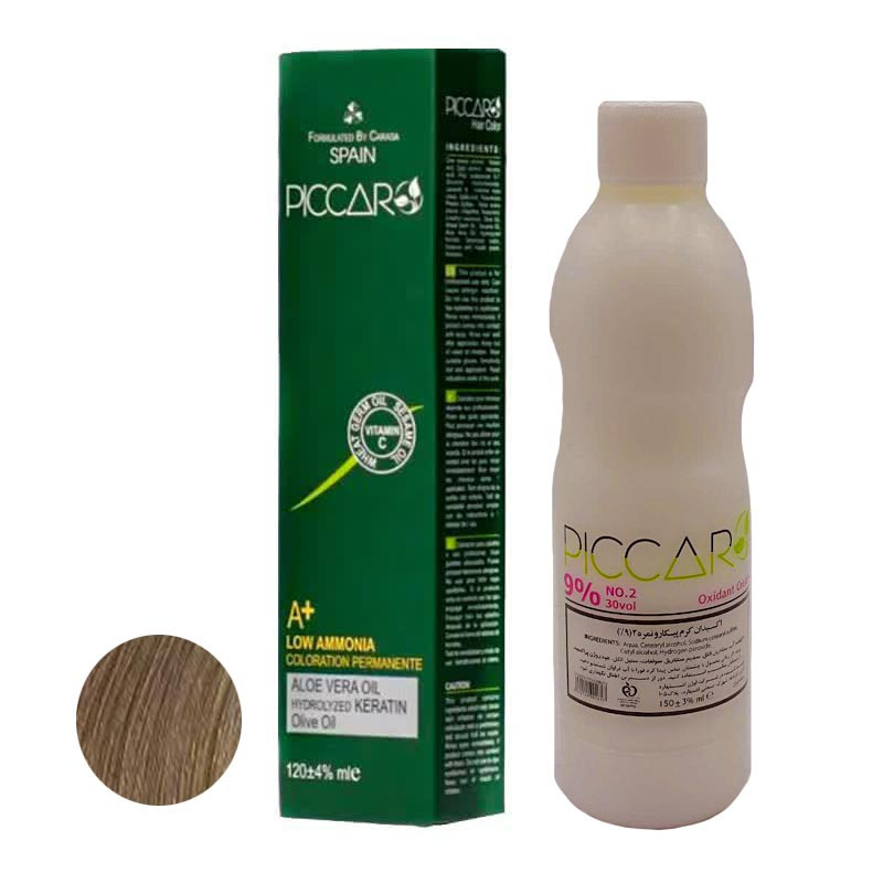 رنگ مو پیکارو شماره 7.57 حجم 120 میلی لیتر رنگ بلوند دارچینی به همراه اکسیدان پیکارو مدل 2 نه درصدی حجم 150 میلی لیتر
