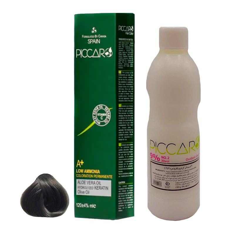 رنگ مو پیکارو شماره A6 حجم 120 میلی لیتر رنگ بلوند خاکستری تیره به همراه اکسیدان پیکارو مدل 2 نه درصدی حجم 150 میلی لیتر