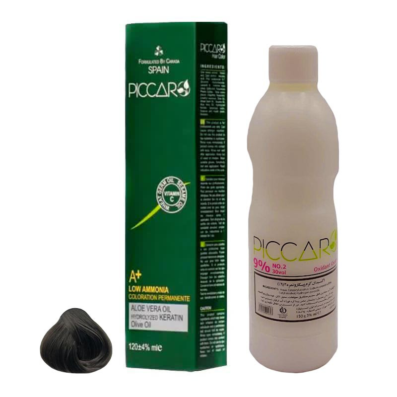 رنگ مو پیکارو شماره M6 حجم 120 میلی لیتر رنگ بلوند زیتونی تیره به همراه اکسیدان پیکارو مدل 2 نه درصدی حجم 150 میلی لیتر