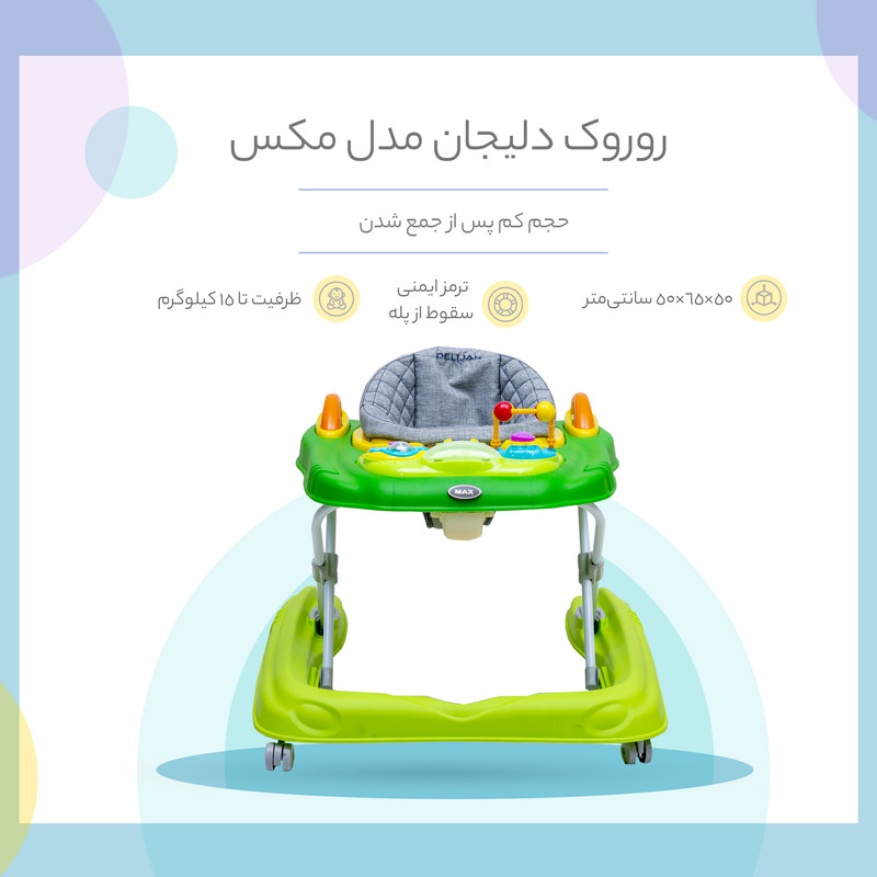 سایر توضیحات | - قابل استفاده از 6 ماهگی - کنسول موزیکال - تنظیم ارتفاع در سه حالت - حجم کم پس از جمع شدن - ترمز ایمنی سقوط از پله - استفاده به عنوان والکر - قابل شستشو - قابلیت تنظیم سه حالته - جنس بدنه: پلاستیک |