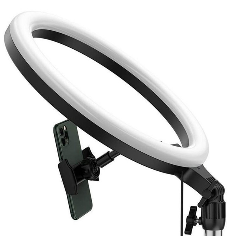 رینگ لایت یک ابزار نورپردازی ساده است که عموما برای گرفتن عکس های زیبایی، پرتره و عکاسی ماکرو استفاده می شود. این ابزار معمولا از چند لامپ کوچک به فرم یک دایره یا فقط یک لامپ فلورسنت مدور تشکیل شده است. زمانی که از این ابزار در عکاسی استفاده می شود، به شکل جذابی نور را در چشمان فرد به دام می اندازد در حالی که نور را بصورت یکنواخت پراکنده کرده و به رفع سایه ها کمک می کند. این ابزار معمولا در جلوی فرد قرار داده می شود و دوربین در وسط این حلقه قرار می گیرد.رینگلایت عمدتا برای عکاسی و فیلمبرداری استفاده می شود. این ابزار عموما برای تهیه پرتره، عکاسی ماکرو و سایر کاربردهایی استفاده می شود که مستلزم کار از نزدیک بر روی یک سوژه هستند (برای مثال، در عکاسی برای مد یا مواد غذایی). همچنین، رینگلایت به عنوان یک ابزار نورپردازی اقتصادی برای فیلمبرداری در فضای داخل ساختمان یا ویدئو بلاگ استفاده می شود. عکاسان و فیلمبرداران علاقه زیادی به رینگلایت ها دارند زیرا آنها نور را در اطراف سوژه مورد نظر پراکنده می کنند و ظهور سایه های زننده را کاهش می دهند.توجه داشته باشید این محصول بدون سهپایه عرضه میشود.برق این رینگلایت توسط کابل USB که داخل بستهبندی قرار دارد تامین میشود و تنظیمات آن نیز با دکمههای قرار گرفته روی آن انجام میشود.