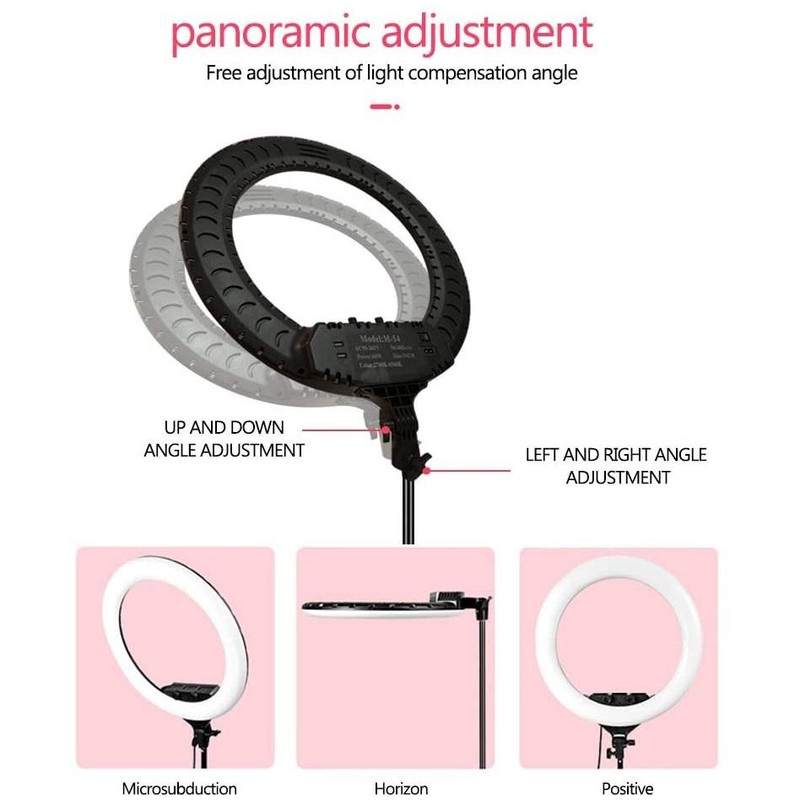 ویژگی ها | طول پایه:210سانتی متر قدرت خروجی: 55W نوع نور: LED CRI: بیشتر از 90 محدوده قدرت: 10% تا 100% ولتاژ ورودی: 220V قطر بیرونی: 45 سانتی متر پورت USB: دارد(2پورت) اقلام داخل محصول: رینگ لایت -سه پایه -کیف برزنتی-.ریموت کنترل .3 عدد نگهدارنده موبایل -کابل برق . |