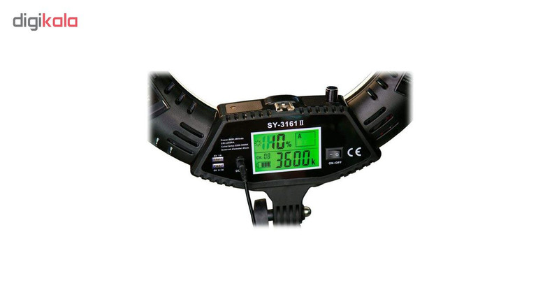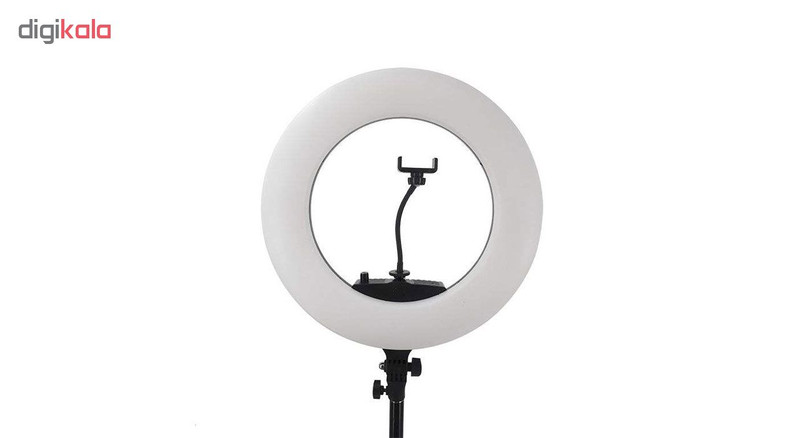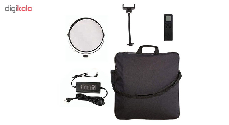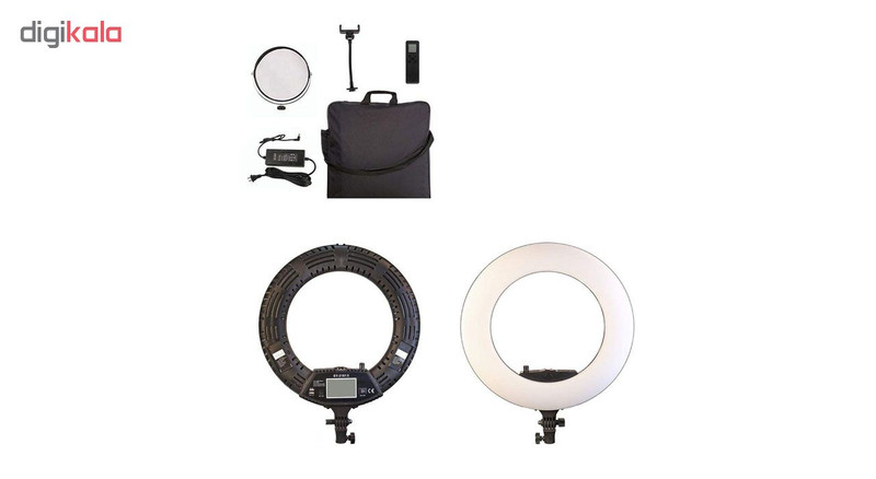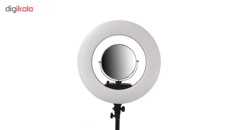 ویژگی ها توان: 96 وات روشنایی: 9600 LUX ولتاژ: 110 تا 220 ولت طول سه‌پایه در حالت بسته: 85 سانتی متر قطر رینگ لایت: 45 سانتی متر قابلیت تنظیم کانال و گرو‌بندی نور امکان نصب باتری و استفاده بدون کابل برق همراه با آینه، آداپتور، ریموت کنترل، پایه نگهدارنده گوشی و دفترچه راهنما مناسب برای برای عکاسی پرتره،تبلیغات و مدلینگ