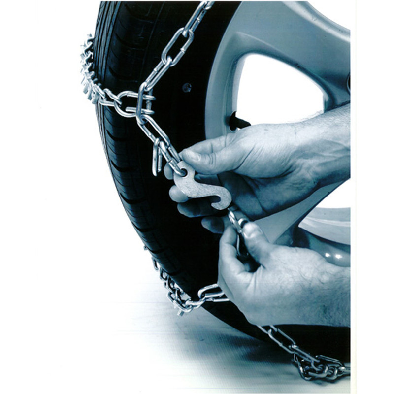 این زنجیر مناسب رینگ های ساده و اسپورت بوده و برای انواع خودروهای سواری کاربرد داشته و برای سفت کردن زنجیر بر روی تایر احتیاج به یک فنر و یا طناب می باشد. از مناسب بودن و بسته شدن زنجير چرخ بر روي تاير خودرو اطمينان حاصل نماييد. (زنجير چرخ متناسب هر تاير، زنجير چرخي است كه فقط به اندازه 3 يا 4 حلقه بزرگتر از تاير نو با بار استاندارد باشد.) بعد از اطمينان يافتن از انتخاب سايز مناسب زنجير چرخ خودروي...