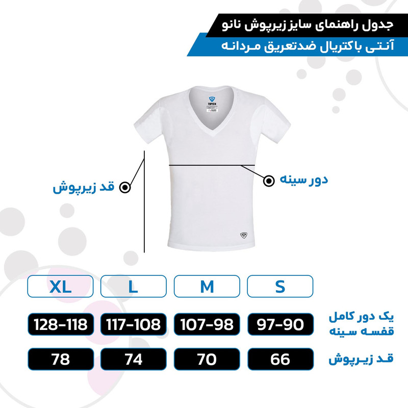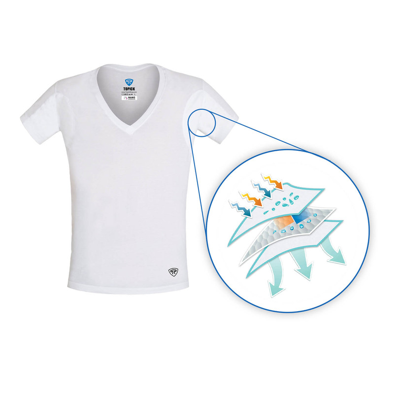 زیرپوش ضد تعریق نانو آنتی‌باکتریال تاپیک برای افرادی مناسب است که تعریق بیش از حد دارند. این زیرپوش دارای لایه محافظ در ناحیه زیربغل است که از بوی عرق و ایجاد لکه‌های خیسی روی لباس جلوگیری می‌کند و به شما اعتماد به نفس بیشتری می‌بخشد. فناوری نانو به کار رفته در این محصول، علاوه بر کاهش نیاز به شستشو، دوام لباس را افزایش می‌دهد و حس آرامش و راحتی بیشتری به شما هدیه می‌دهد. با استفاده از این فناوری، باکتری‌های بوزا قادر به نفوذ در پارچه نیستند و در تماس با مواد نانو از بین می‌روند. زیرپوش تاپیک 100٪ از نخ پنبه تهیه شده و ضد حساسیت است؛ بنابراین از بروز هرگونه حساسیت پوستی جلوگیری می‌کند.