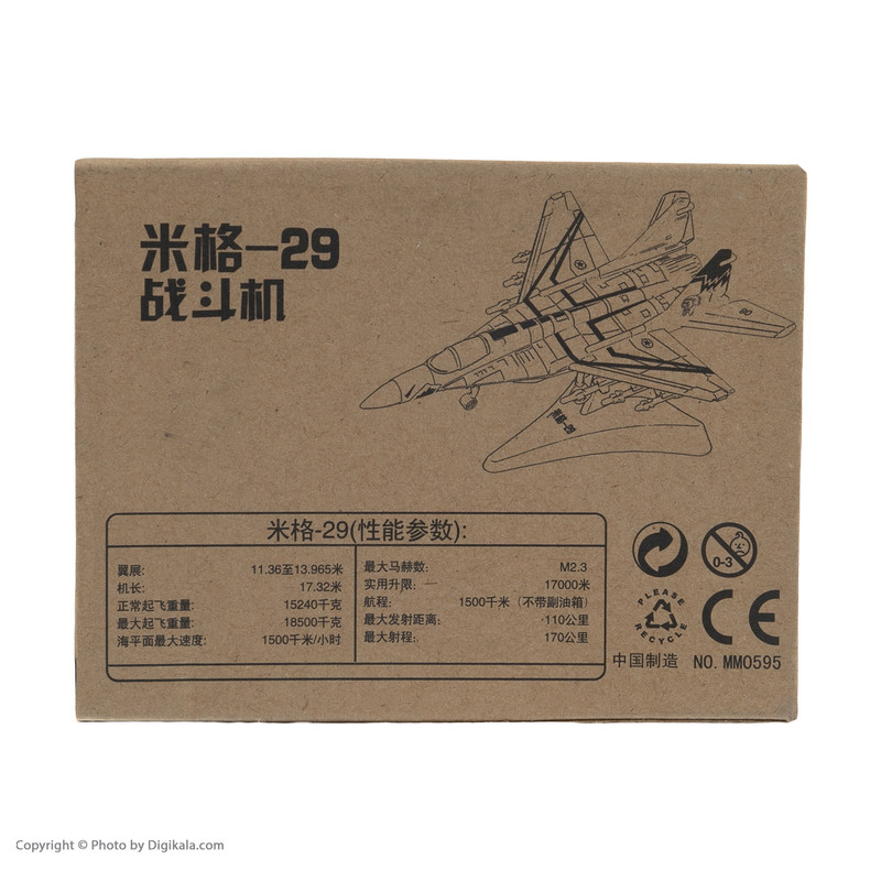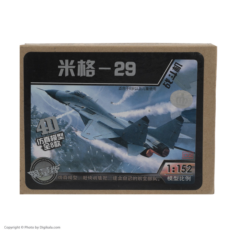 ساختنی طرح هواپیما جنگنده مدل میگ29 کد 3582 ساخت چین و از جنس پلاستیک می باشد.