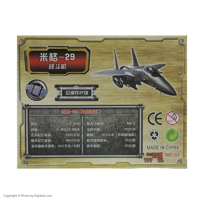 ساختنی طرح هواپیما جنگنده مدل میگ29 کد 3804 ساخت چین و از جنس پلاستیک می باشد.