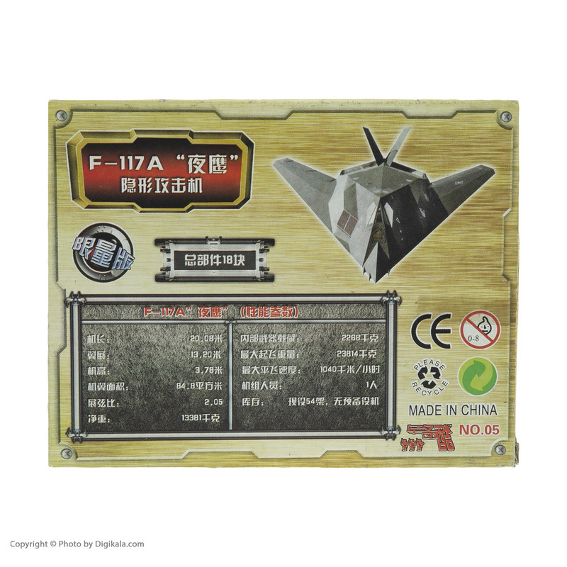 ساختنی طرح هواپیما جنگنده مدل F-117 کد 3807 ساخت چین و از جنس پلاستیک می باشد.