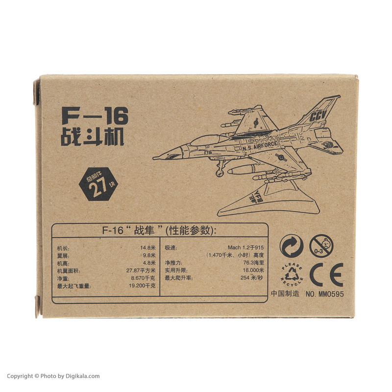 ساختنی طرح هواپیما جنگنده مدل F-16 کد 3585 ساخت چین و از جنس پلاستیک می باشد.