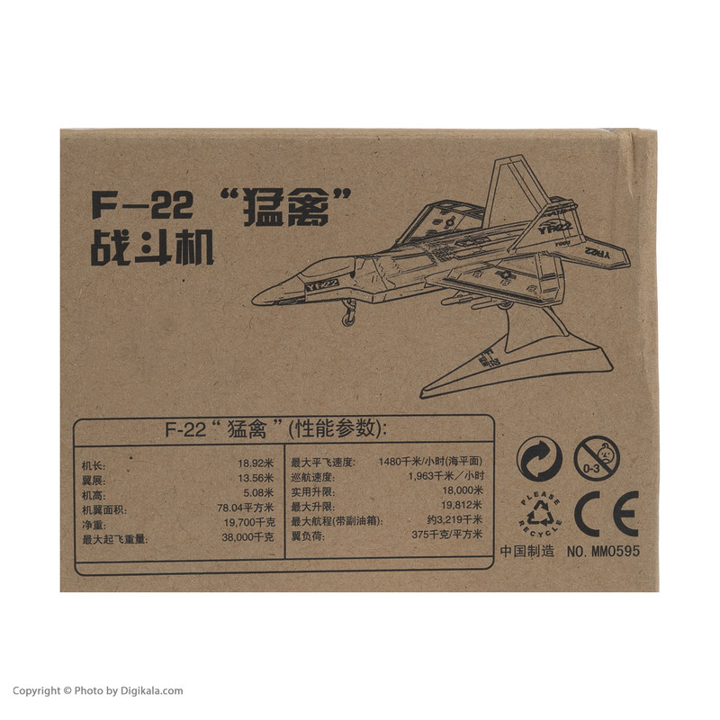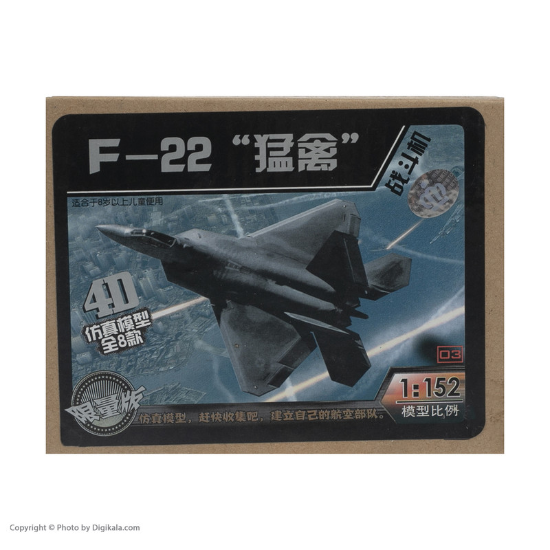 محصول پیش رو ساختنی طرح هواپیما جنگنده مدل F-22 کد 3583 ساخت چین و از جنس پلاستیک می باشد.