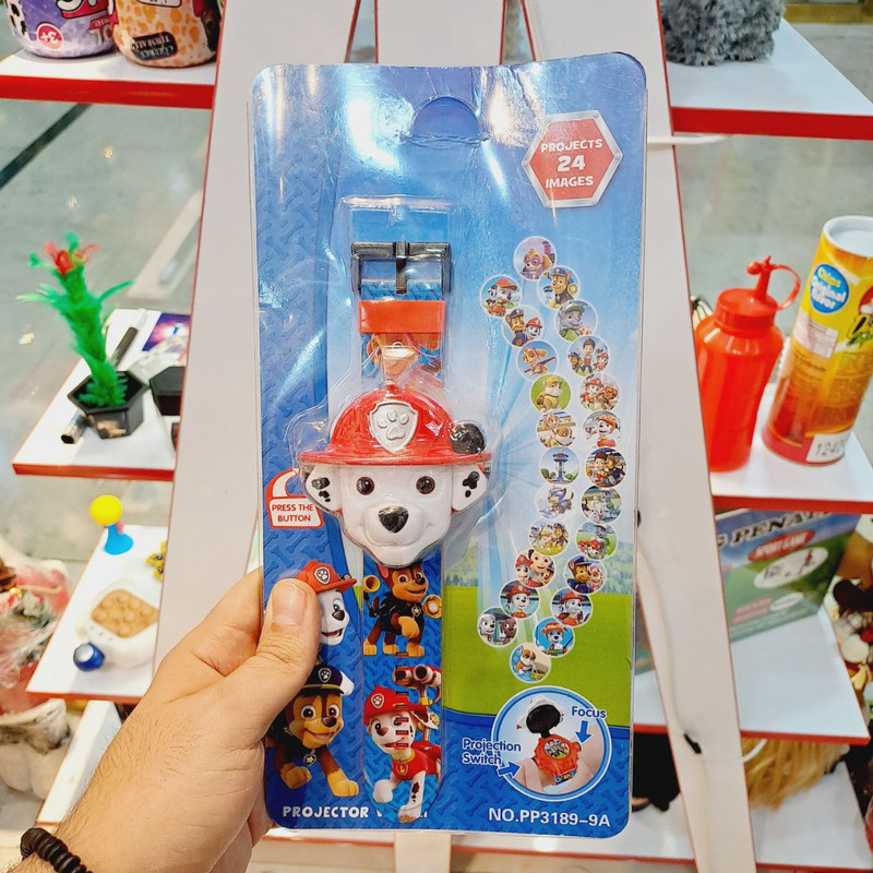 ساعت پروژکتوری سگ های نگهبان محصولی بسیار جذاب و مناسب برای هدیه دادن به کودکان است.این ساعت با داشتن 24 اسلاید از شخصیت های سگ های نگهبان وسیله ای سرگم کننده برای تفریح کودکان میباشد. همچنین این ساعت دارای یک نمایشگر دیجیتالی جهت نمایش ساعت نیز می باشد.