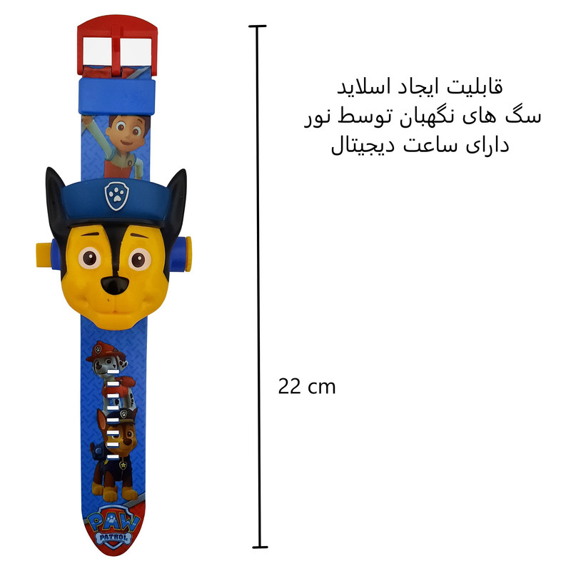 | سایر توضیحات | دارای ساعت دیجیتال قابلیت ایجاد اسلاید شخصیت سگ های نگهبان توسط نور ( 24 مدل تصاویر ) دارای بسته بندی مناسب هدیه باتری دارد ( در داخل ساعت موجود می باشد ) ساخته شده از پلاستیک با کیفیت |