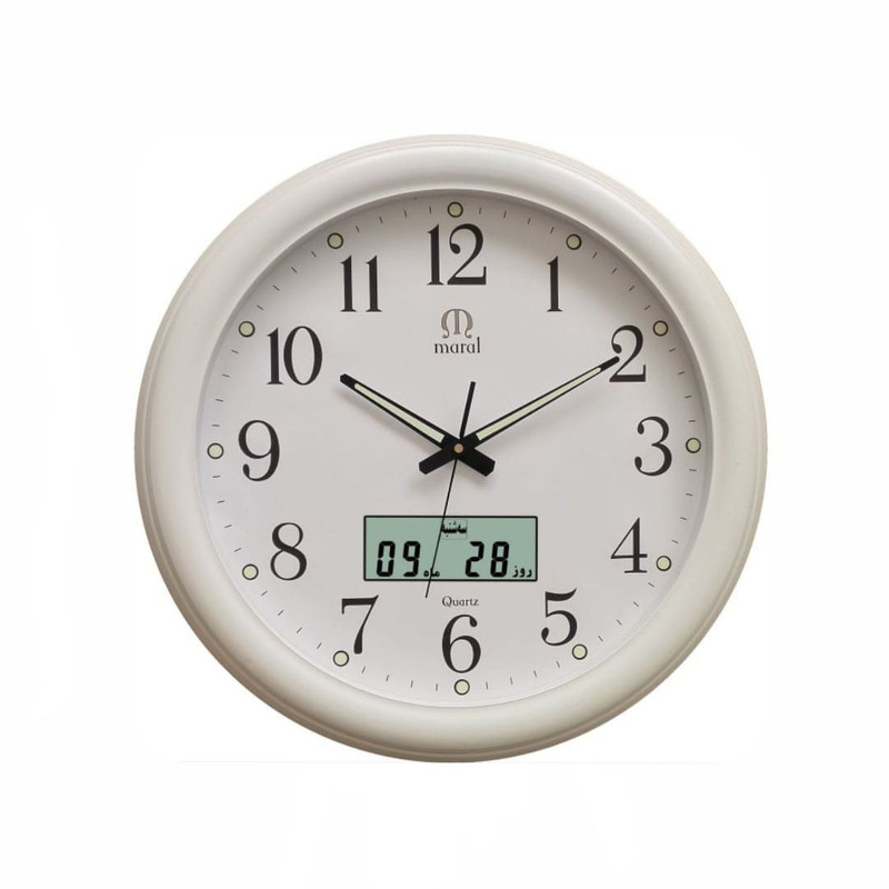 ساعت دیواری مارال کد 12 بدنه پلاستیک و قطر53 سانتی متر دارداین ساعت مجهز به تقویم فارسی یا شمسی می باشد که روز و ماه و سال را به سال شمسی خدمت شما ارائه می کند
