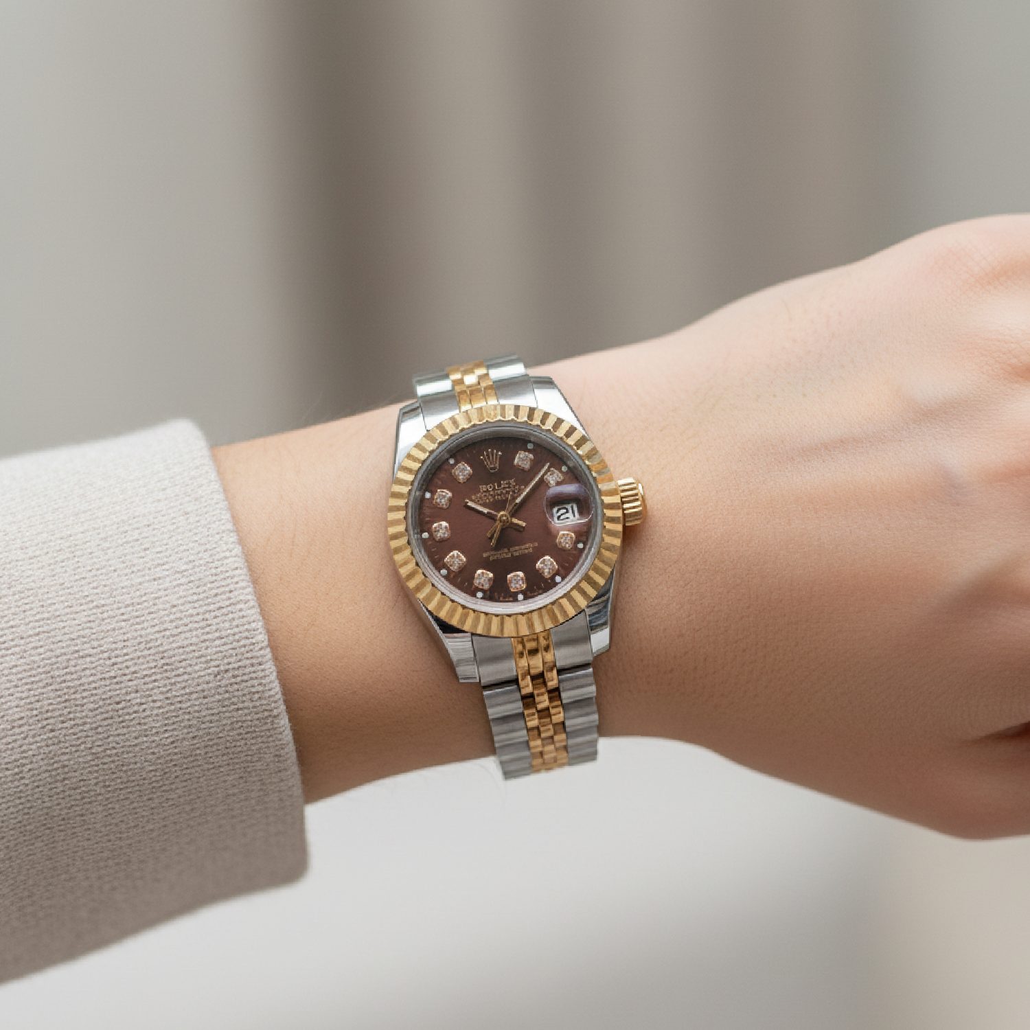 ساعت رولکس دیت جاست دورنگ رزگلد صفحه قهوه ای بیش از یک ساعت، یک میراث ماندگار است. اجازه دهید این ترکیب بینظیر از هنر و مهندسی، زینتبخش دستان شما باشد.