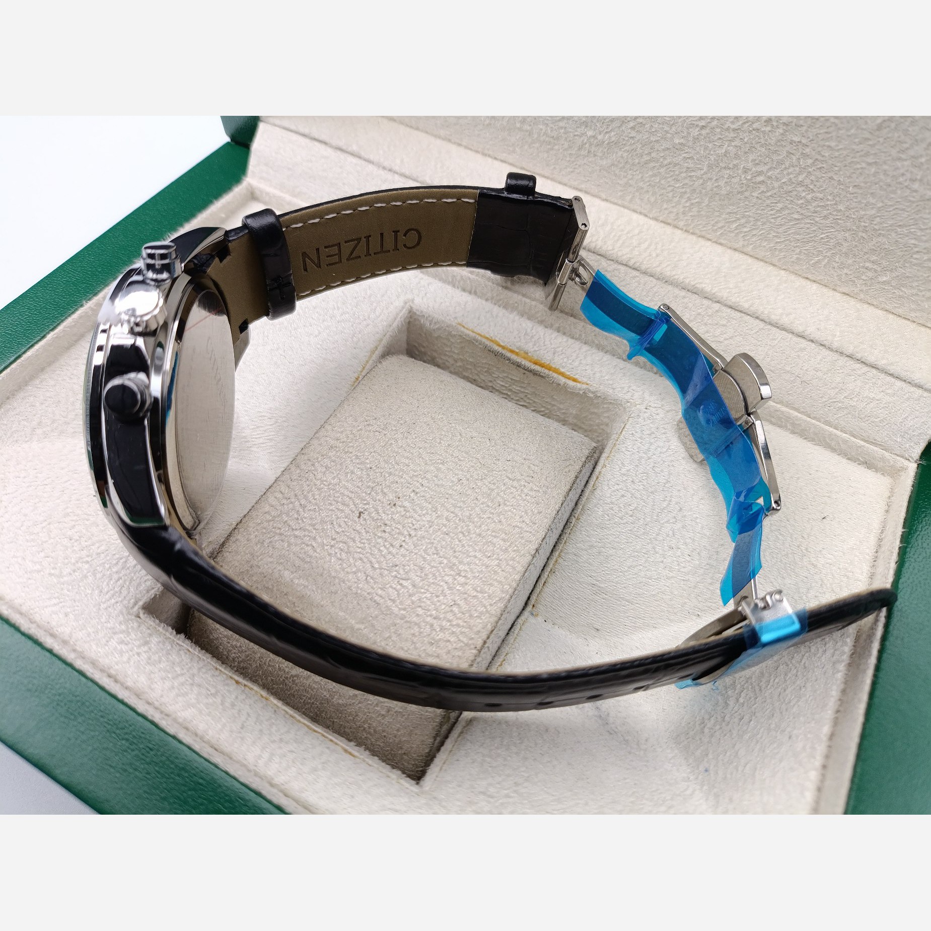 بند چرمی با اصالت: بند چرمی درجه یک با لوگوی حک‌شده سیتیزن، نه تنها راحتی بی‌نظیری را به ارمغان می‌آورد، بلکه حس گرما و لوکس بودن چرم طبیعی را به شما منتقل می‌کند.