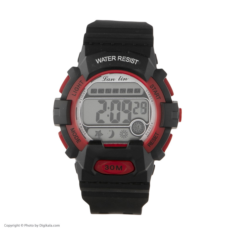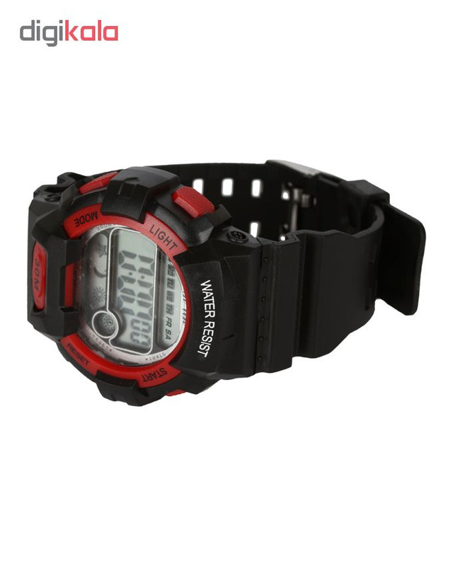 یک ساعت دیجیتالی با کلیه امکانات نظیر کرنومتر، آلارم، چراغ، نشاندهنده تاریخ و ساعت 24 ساعته و... میباشد