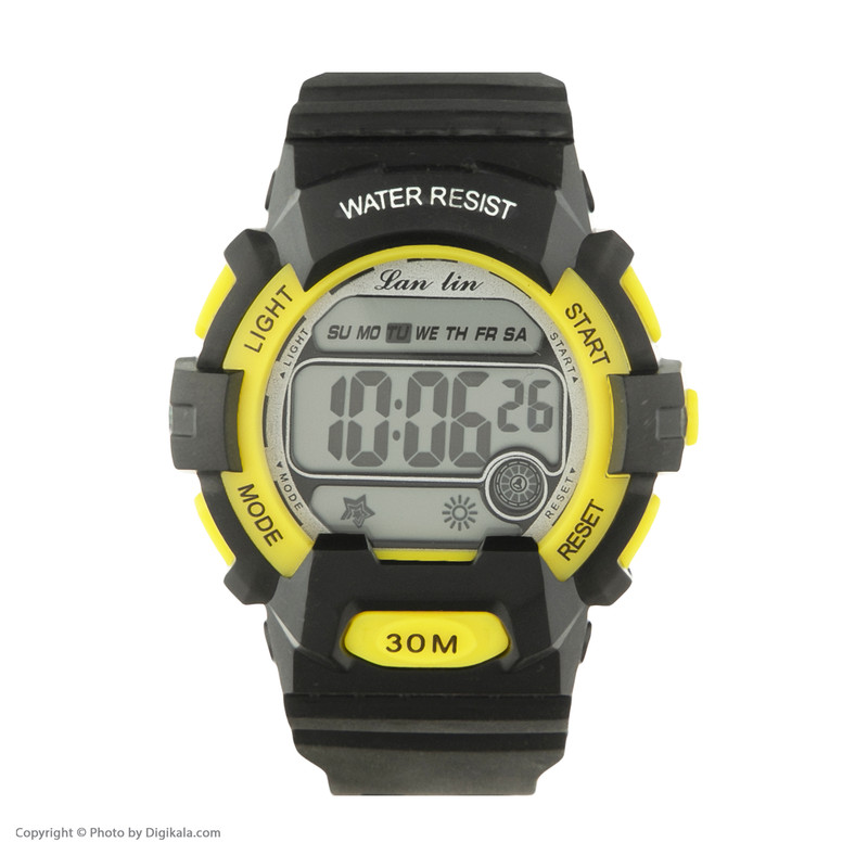 یک ساعت دیجیتالی با کلیه امکانات نظیر کرنومتر، آلارم، چراغ، نشاندهنده تاریخ و ساعت 24 ساعته و... میباشد