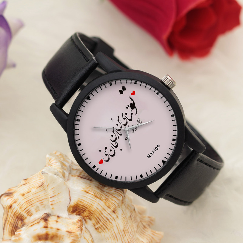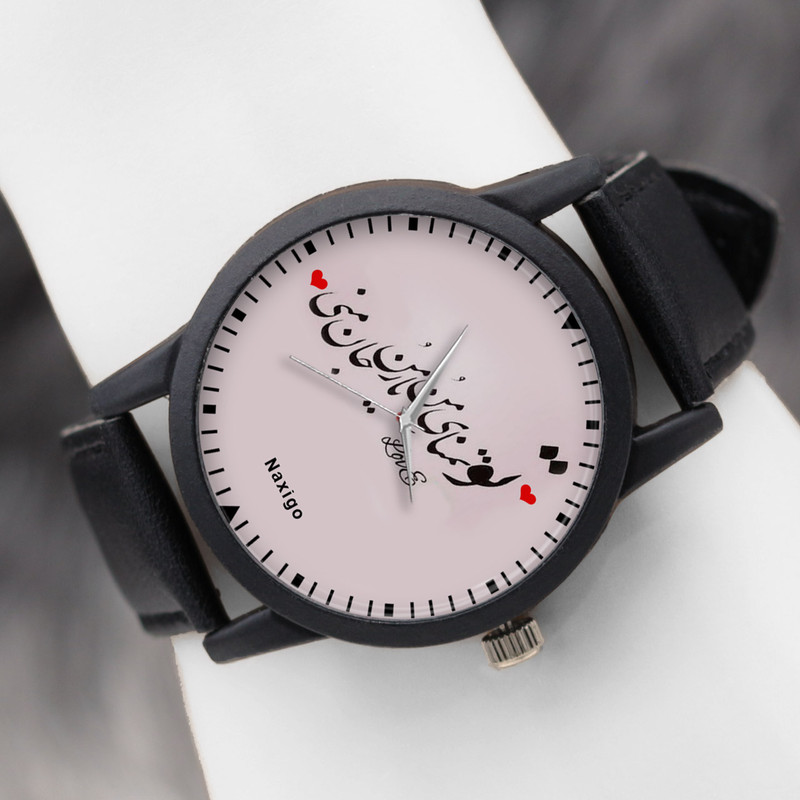 ساعت مچی عقربه ای ناکسیگو طرح تو تمنای من یار من جان منی یک ساعت مچی برای استفاده روزمره به شمار می آید. کیفیت، زیبایی و کارایی از بارزترین مشخصه های این کالا می باشد. ناکسیگو با تولید ساعت های خاص در طرح های متنوع برای همه نوع سلیقه ای سعی در فراهم کردن خواسته اغلب مردم نموده است. موتور این محصول کیفیت مناسبی دارد و کارکردی مطمئن را به ارمغان می آورد. بند این ساعت از چرم مصنوعی تولید شده، که دارای مقاومت بالا و نرمی فوق العاده است و باعث آزار دست نمی شود. عقربه های از جنس روی جلوه ای زیبا به این ساعت بخشیده. بدنه این ساعت از جنس پلاستیک فشرده بوده که باعث سبکی و استفاده راحت آن می شود.