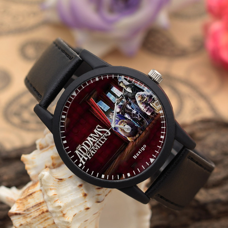 ساعت مچی عقربه ای ناکسیگو طرح خانواده آدامز 1 یک ساعت مچی برای استفاده روزمره به شمار می آید. کیفیت، زیبایی و کارایی از بارزترین مشخصه های این کالا می باشد. ناکسیگو با تولید ساعت های خاص در طرح های متنوع برای همه نوع سلیقه ای سعی در فراهم کردن خواسته اغلب مردم نموده است. موتور این محصول کیفیت مناسبی دارد و کارکردی مطمئن را به ارمغان می آورد. بند این ساعت از چرم مصنوعی تولید شده، که دارای مقاومت بالا و نرمی فوق العاده است و باعث آزار دست نمی شود. عقربه های از جنس روی جلوه ای زیبا به این ساعت بخشیده. بدنه این ساعت از جنس پلاستیک فشرده بوده که باعث سبکی و استفاده راحت آن می شود.