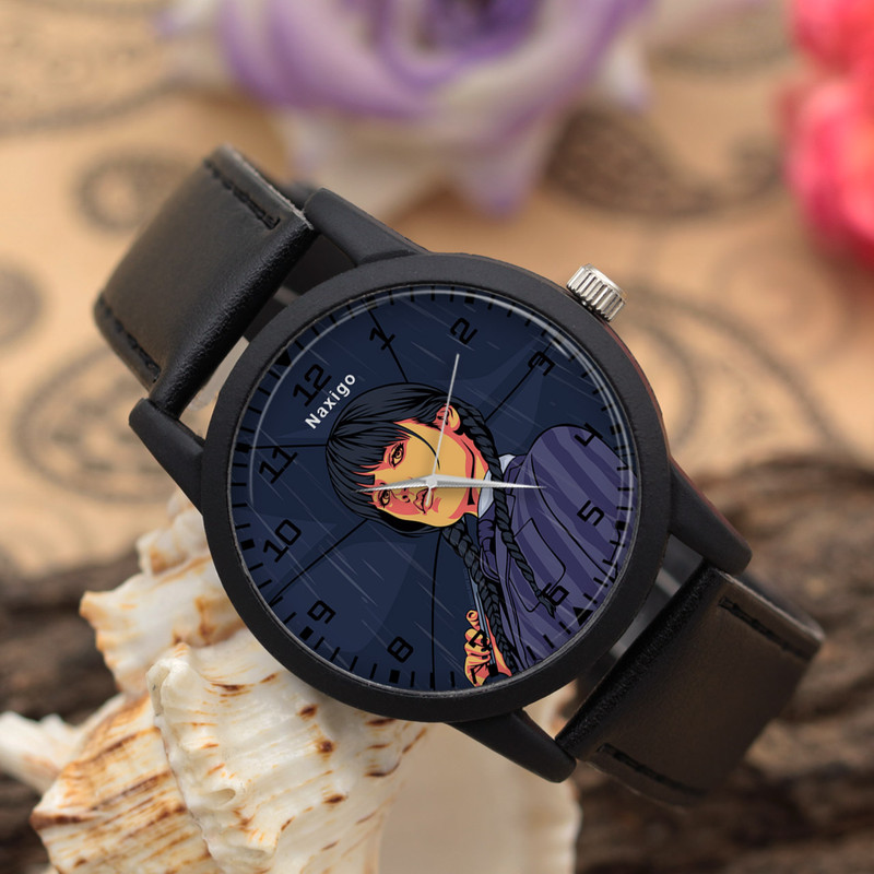 ساعت مچی عقربه ای ناکسیگو طرح سریال ونزدی (Wednesday) یک ساعت مچی برای استفاده روزمره به شمار می ‎آید. کیفیت، زیبایی و کارایی از بارزترین مشخصه‌ های این کالا‌ می ‌باشد. ناکسیگو با تولید ساعت ‌های خاص در طرح های متنوع برای همه نوع سلیقه ‌ای سعی در فراهم کردن خواسته اغلب مردم نموده است. موتور این محصول کیفیت مناسبی دارد و کارکردی مطمئن را به ارمغان می‌ آورد. بند این ساعت از چرم مصنوعی تولید شده، که دارای مقاومت بالا و نرمی فوق العاده است و باعث آزار دست نمی‌ شود. عقربه ‌های از جنس روی جلوه‌ ای زیبا به این ساعت بخشیده. بدنه این ساعت از جنس پلاستیک فشرده بوده که باعث سبکی و استفاده راحت آن می شود.