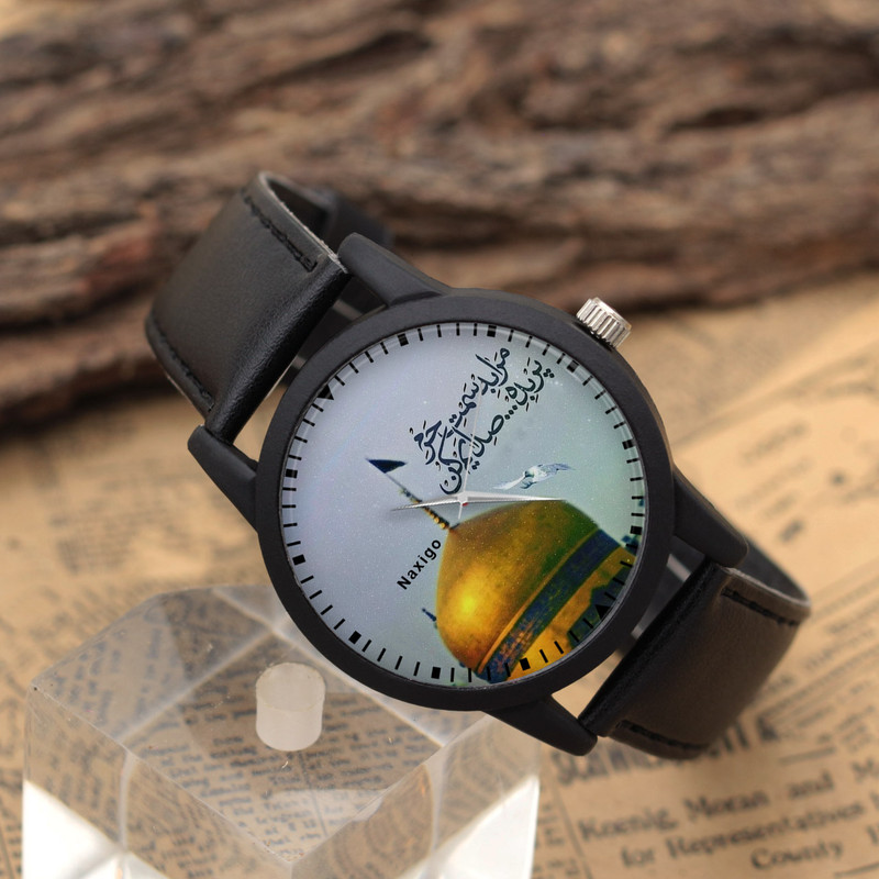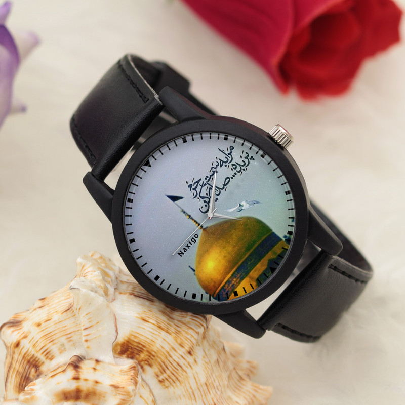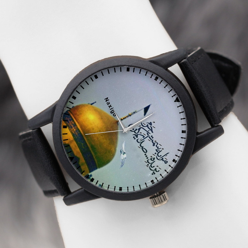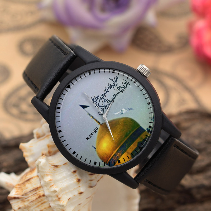 ساعت مچی عقربه ای ناکسیگو طرح مرا به سمت حرم پر بده صدایم کن یک ساعت مچی برای استفاده روزمره به شمار می آید. کیفیت، زیبایی و کارایی از بارزترین مشخصه های این کالا می باشد. ناکسیگو با تولید ساعت های خاص در طرح های متنوع برای همه نوع سلیقه ای سعی در فراهم کردن خواسته اغلب مردم نموده است. موتور این محصول کیفیت مناسبی دارد و کارکردی مطمئن را به ارمغان می آورد. بند این ساعت از چرم مصنوعی تولید شده، که دارای مقاومت بالا و نرمی فوق العاده است و باعث آزار دست نمی شود. عقربه های از جنس روی جلوه ای زیبا به این ساعت بخشیده. بدنه این ساعت از جنس پلاستیک فشرده بوده که باعث سبکی و استفاده راحت آن می شود.