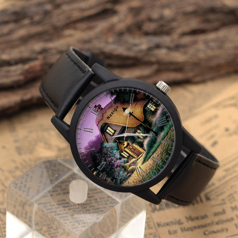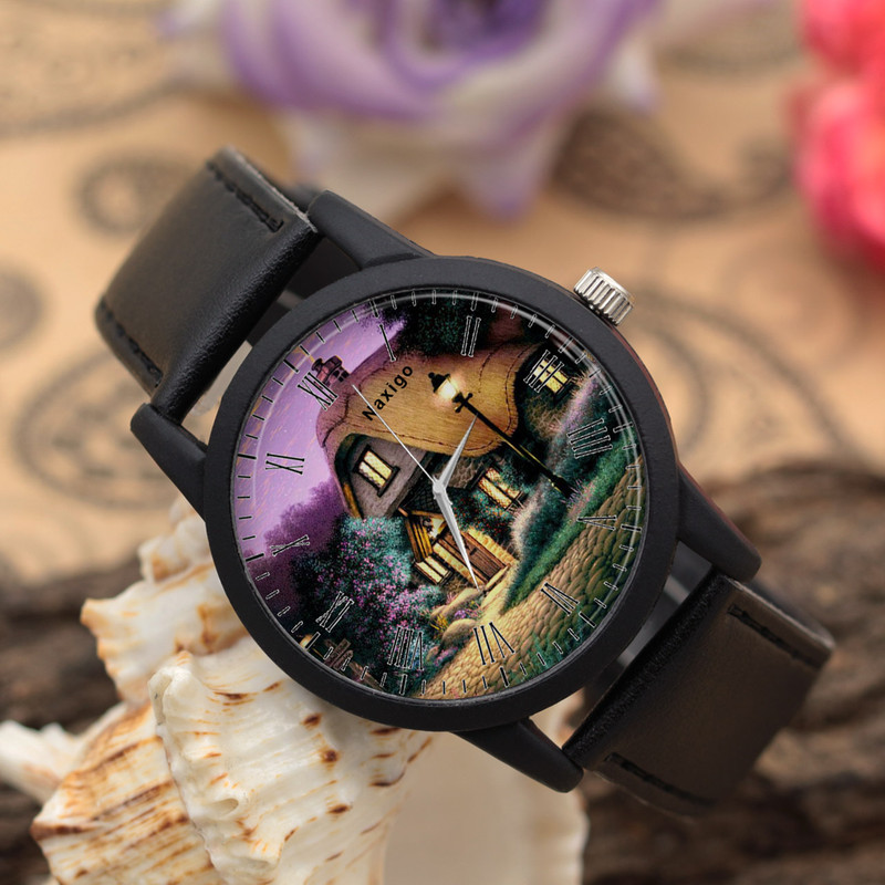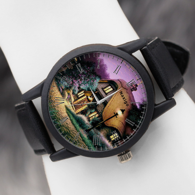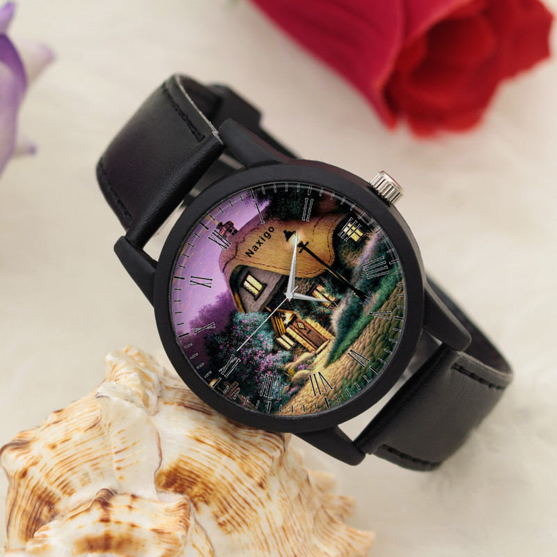 ساعت مچی عقربه ای ناکسیگو طرح کلبه یک ساعت مچی برای استفاده روزمره به شمار می ‎آید. کیفیت، زیبایی و کارایی از بارزترین مشخصه‌ های این کالا‌ می ‌باشد. ناکسیگو با تولید ساعت ‌های خاص در طرح های متنوع برای همه نوع سلیقه ‌ای سعی در فراهم کردن خواسته اغلب مردم نموده است. موتور این محصول کیفیت مناسبی دارد و کارکردی مطمئن را به ارمغان می‌ آورد. بند این ساعت از چرم مصنوعی تولید شده، که دارای مقاومت بالا و نرمی فوق العاده است و باعث آزار دست نمی‌ شود. عقربه ‌های از جنس روی جلوه‌ ای زیبا به این ساعت بخشیده. بدنه این ساعت از جنس پلاستیک فشرده بوده که باعث سبکی و استفاده راحت آن می شود.