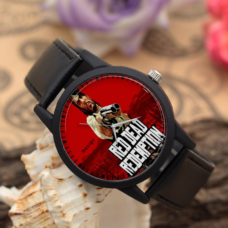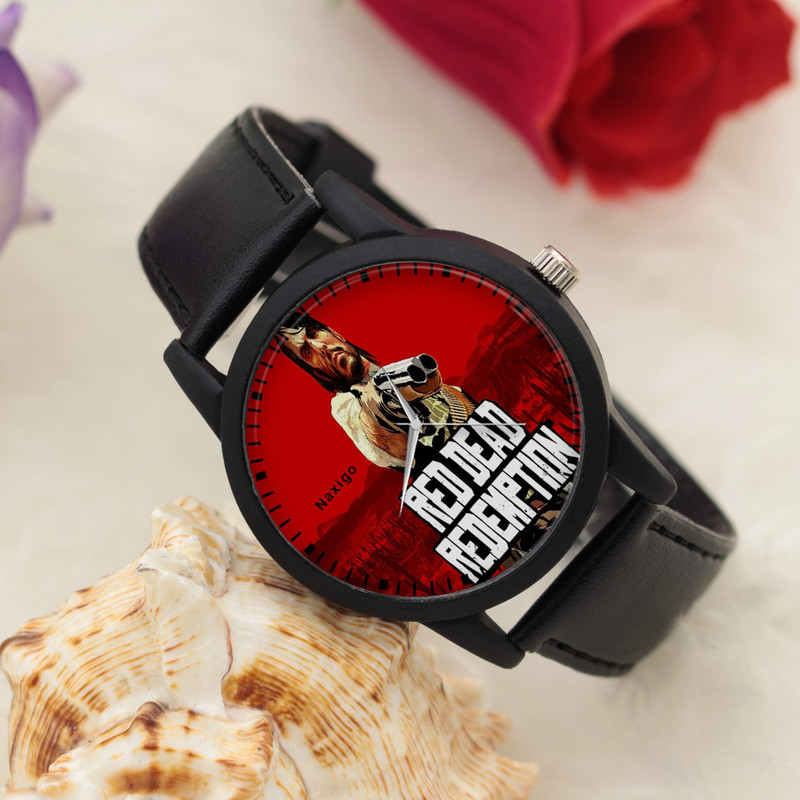 ساعت مچی عقربه ای ناکسیگو طرح Red Dead Redemption یک ساعت مچی برای استفاده روزمره به شمار می آید. کیفیت، زیبایی و کارایی از بارزترین مشخصه های این کالا می باشد موتور این محصول کیفیت مناسبی دارد و کارکردی مطمئن را به ارمغان می آورد. بند این ساعت از چرم مصنوعی تولید شده، که دارای مقاومت بالا و نرمی فوق العاده است و باعث آزار دست نمی شود. عقربه های از جنس روی جلوه ای زیبا به این ساعت بخشیده. بدنه این ساعت از جنس پلاستیک فشرده بوده که باعث سبکی و استفاده راحت آن می شود