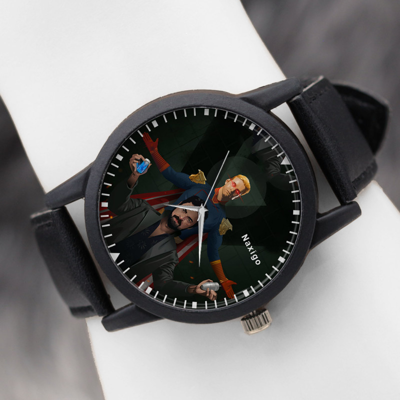 ساعت مچی عقربه ای ناکسیگو طرح The Boys یک ساعت مچی برای استفاده روزمره به شمار می ‎آید. کیفیت، زیبایی و کارایی از بارزترین مشخصه‌ های این کالا‌ می ‌باشد. ناکسیگو با تولید ساعت ‌های خاص در طرح های متنوع برای همه نوع سلیقه ‌ای سعی در فراهم کردن خواسته اغلب مردم نموده است. موتور این محصول کیفیت مناسبی دارد و کارکردی مطمئن را به ارمغان می‌ آورد. بند این ساعت از چرم مصنوعی تولید شده، که دارای مقاومت بالا و نرمی فوق العاده است و باعث آزار دست نمی‌ شود. عقربه ‌های از جنس روی جلوه‌ ای زیبا به این ساعت بخشیده. بدنه این ساعت از جنس پلاستیک فشرده بوده که باعث سبکی و استفاده راحت آن می شود.