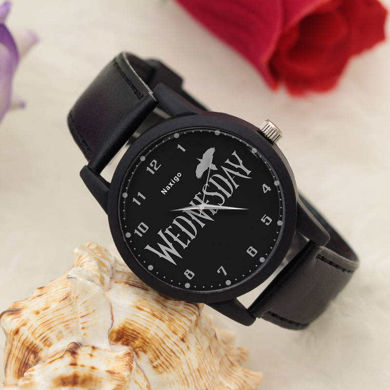 ساعت مچی عقربه ای ناکسیگو طرح سریال ونزدی (Wednesday) یک ساعت مچی برای استفاده روزمره به شمار می ‎آید. کیفیت، زیبایی و کارایی از بارزترین مشخصه‌ های این کالا‌ می ‌باشد. ناکسیگو با تولید ساعت ‌های خاص در طرح های متنوع برای همه نوع سلیقه ‌ای سعی در فراهم کردن خواسته اغلب مردم نموده است. موتور این محصول کیفیت مناسبی دارد و کارکردی مطمئن را به ارمغان می‌ آورد. بند این ساعت از چرم مصنوعی تولید شده، که دارای مقاومت بالا و نرمی فوق العاده است و باعث آزار دست نمی‌ شود. عقربه ‌های از جنس روی جلوه‌ ای زیبا به این ساعت بخشیده. بدنه این ساعت از جنس پلاستیک فشرده بوده که باعث سبکی و استفاده راحت آن می شود.