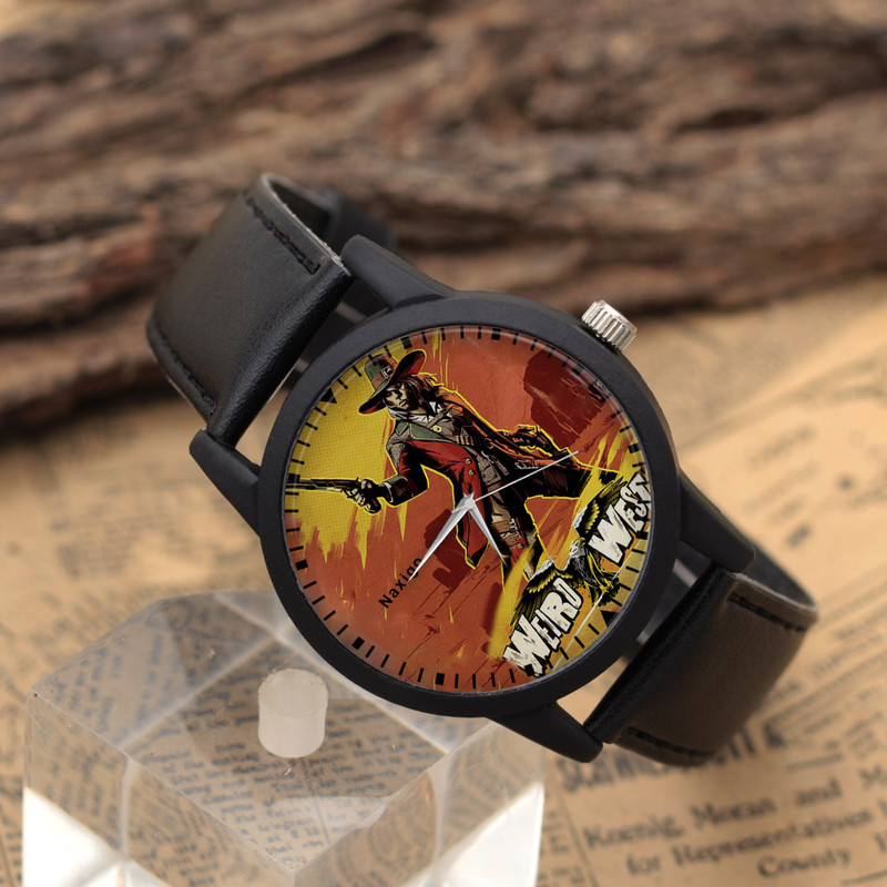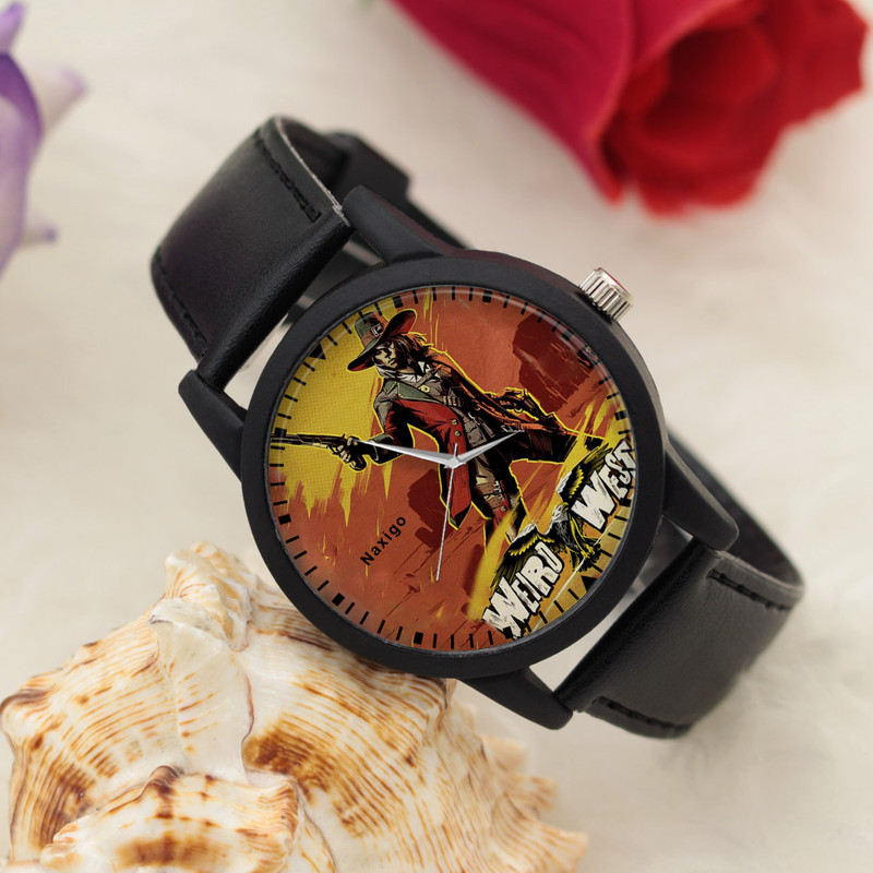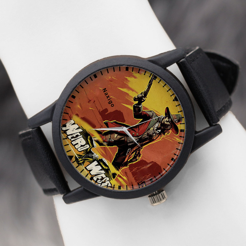 ساعت مچی عقربه ای ناکسیگو طرح Weird West یک ساعت مچی برای استفاده روزمره به شمار می آید. کیفیت، زیبایی و کارایی از بارزترین مشخصه های این کالا می باشد. ناکسیگو با تولید ساعت های خاص در طرح های متنوع برای همه نوع سلیقه ای سعی در فراهم کردن خواسته اغلب مردم نموده است. موتور این محصول کیفیت مناسبی دارد و کارکردی مطمئن را به ارمغان می آورد. بند این ساعت از چرم مصنوعی تولید شده، که دارای مقاومت بالا و نرمی فوق العاده است و باعث آزار دست نمی شود. عقربه های از جنس روی جلوه ای زیبا به این ساعت بخشیده. بدنه این ساعت از جنس پلاستیک فشرده بوده که باعث سبکی و استفاده راحت آن می شود.