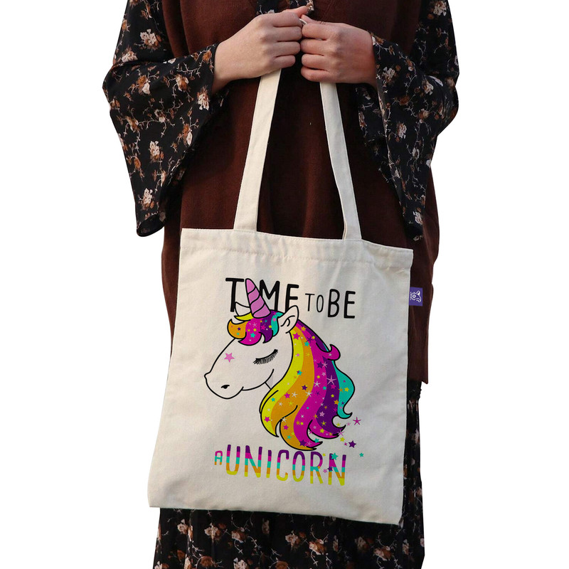 ساک خرید ترمه طراحان ایده مدل تک شاخ رنگین کمونی کد cfp1447 - S