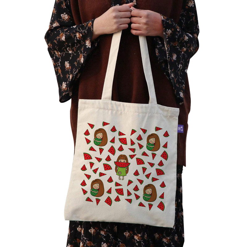 ساک خرید ترمه طراحان ایده مدل دختر و هندونه کد cfp1426 - L