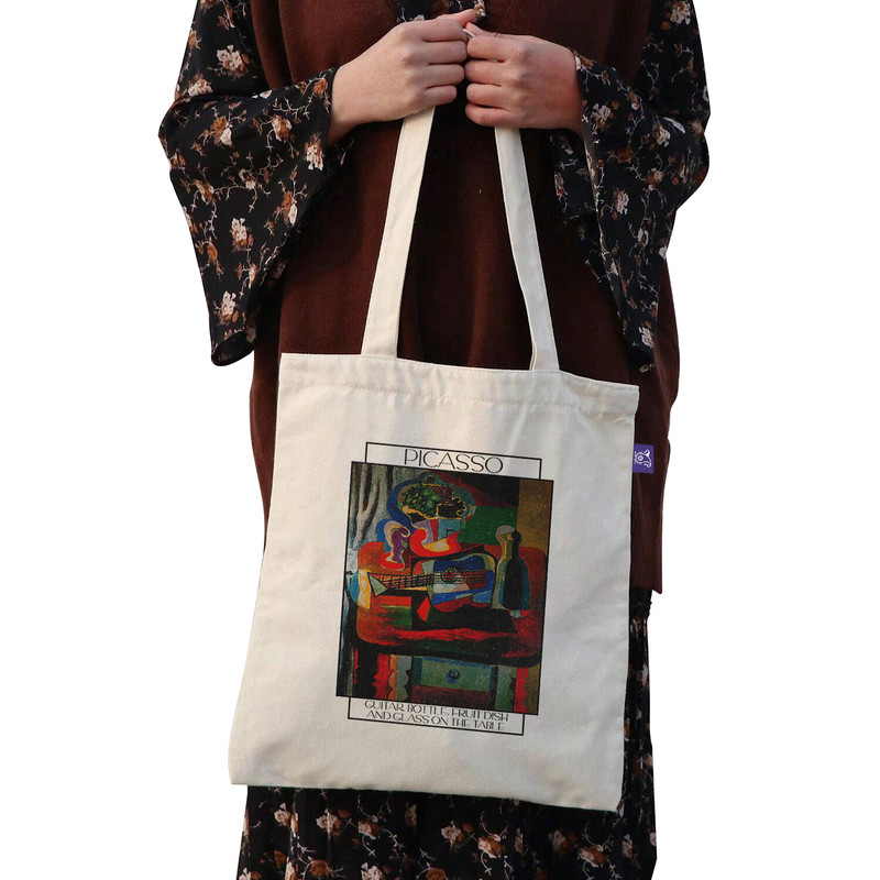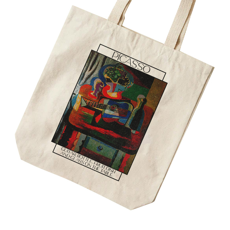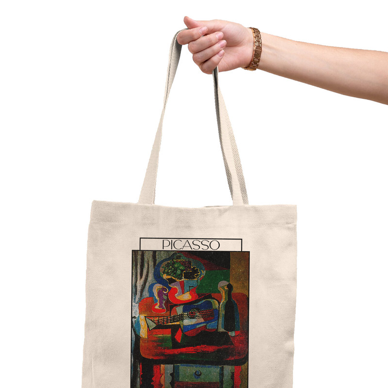 ساک خرید ترمه طراحان ایده مدل گیتار، بطری، دیس میوه و لیوان روی میز از پیکاسو کد art0347 - L