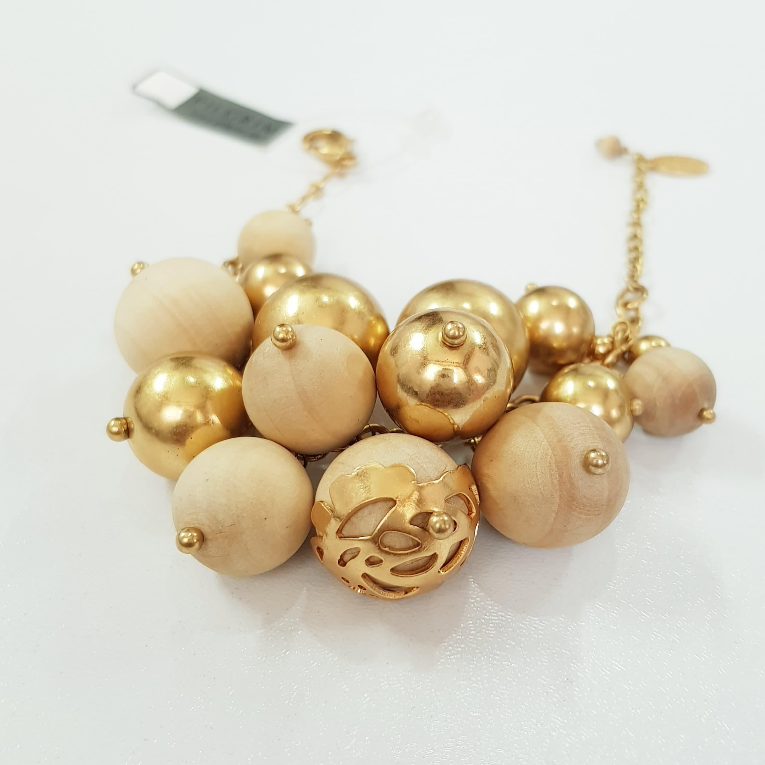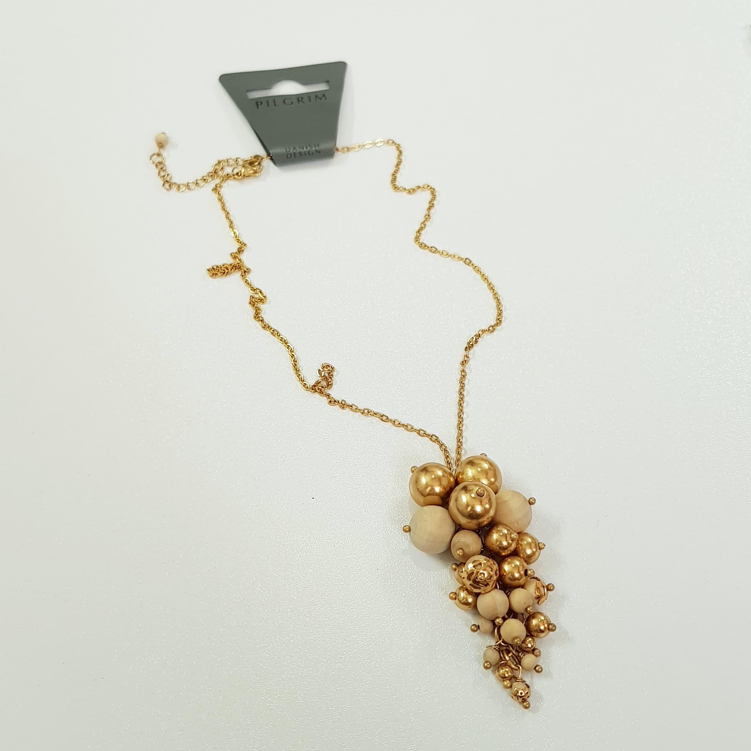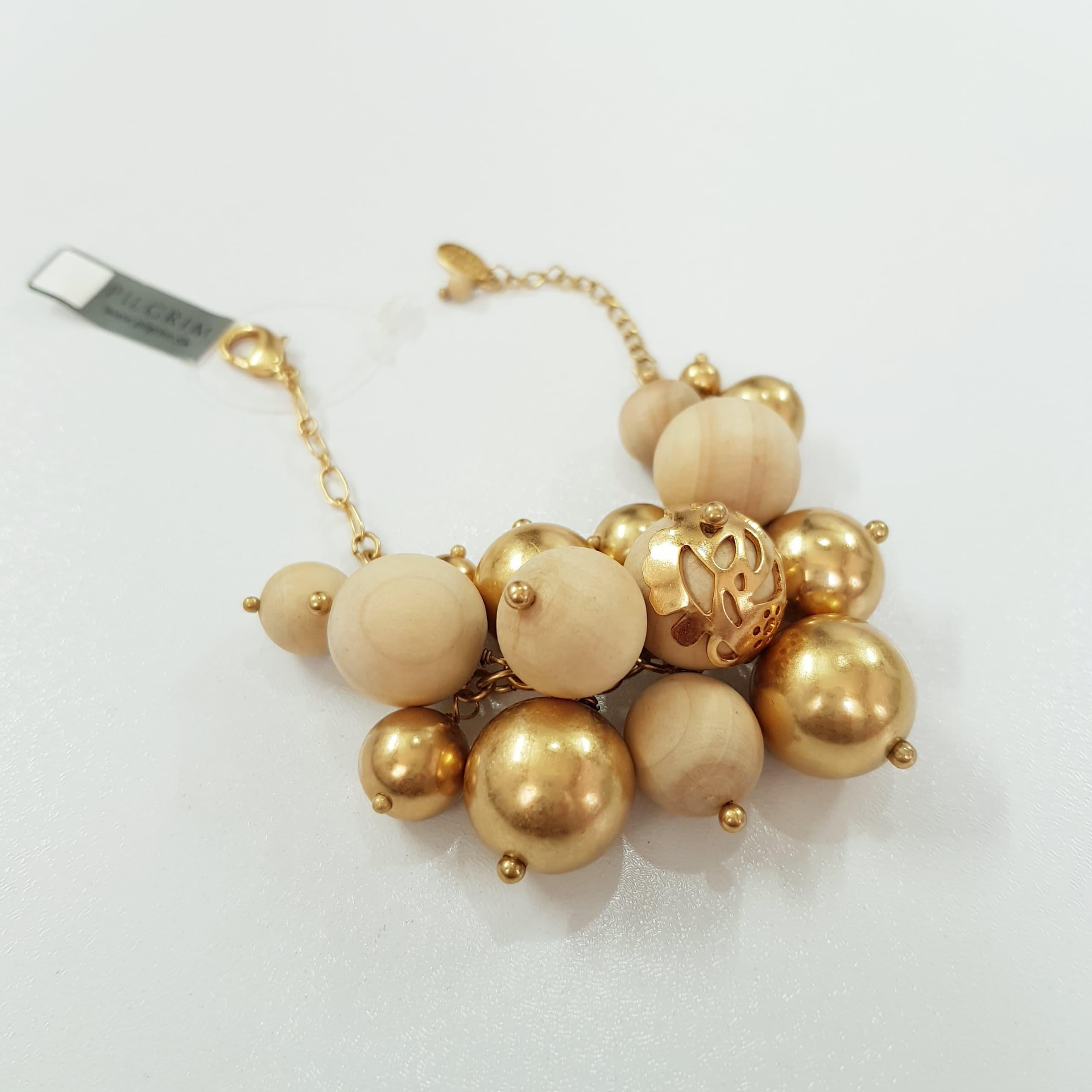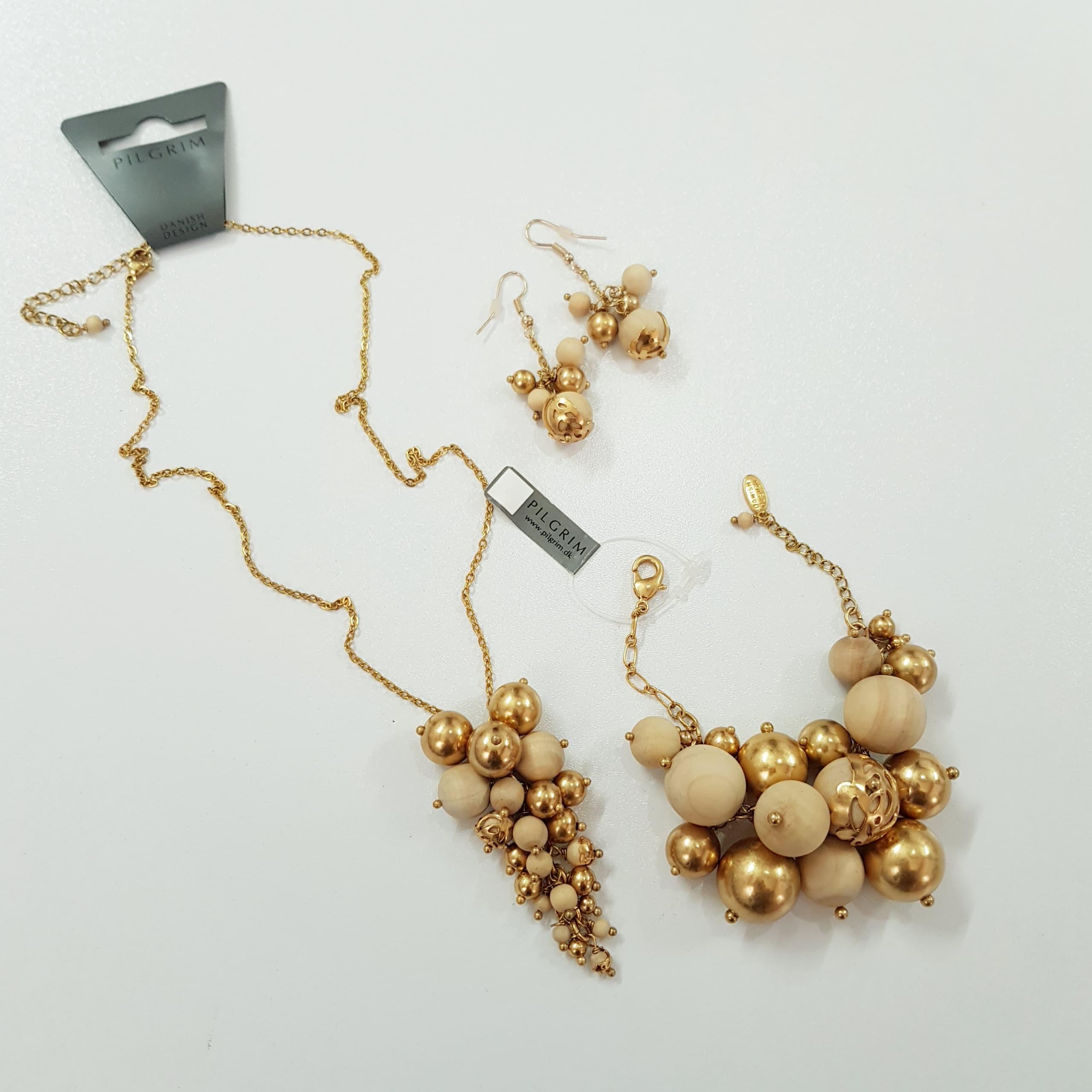 ست گردنبند ، دستبند و گوشواره استیل کار شده با گوی های چوبی ، کار بسیار زیبا و پر از جزئیات از برند Pilgrim ، مناسب استفاده دائم رنگ ثابت و ضد حساسیت