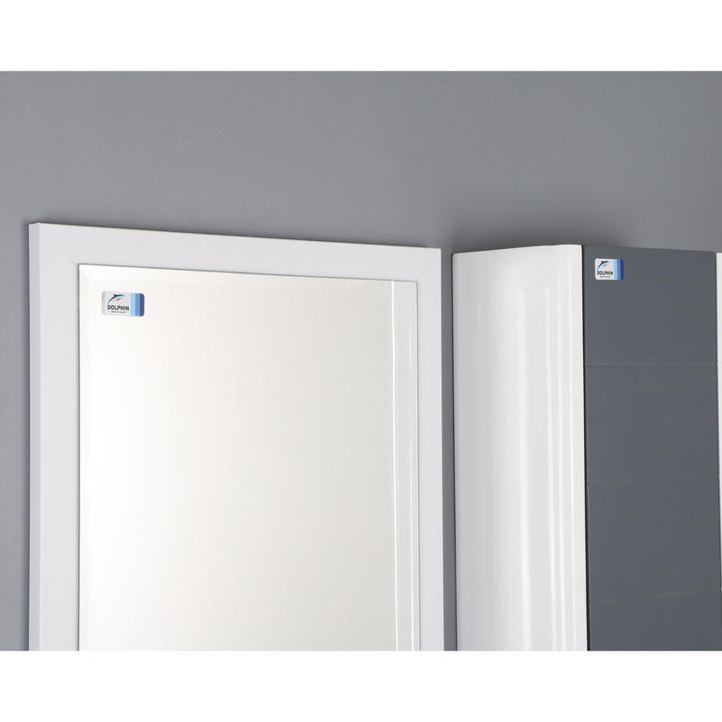 آینه و باکس دلفین کد 1056. این محصول ساخته شده از جنس پی ویسی و ضدآب است. کابینت کنار آینه سایز و فضای مناسب برای استفاده را مهیا نموده است این محصول باید توسط پیچ و رولپلاک به دیوار نصب شود که متعلقات نصب همراه کالا ارسال می شود. آینهی بهکاررفته از نوع درجه یک سوپر کریستال بوده که پشت آینه نقره اندود شده است. تراش یک سانتیمتری دور آینه باعث زیبایی و استحکام بیشتر لبه هاست. لولای کابین از نوع آرام بند بوده و استحکام طبقات برای قرار دادن وزن های متعارف قابلقبول است.