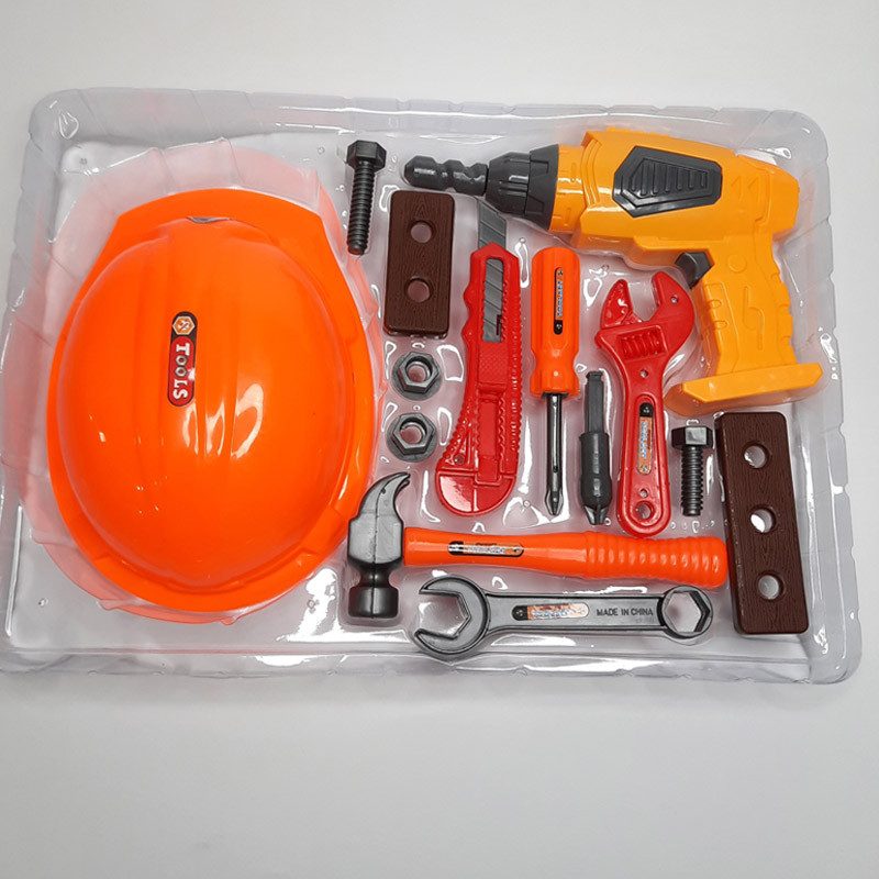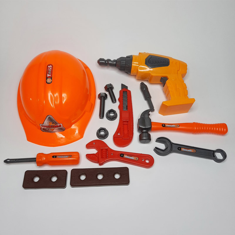 | اقلام همراه | - 15 قطعه : دریل ، 2 پیچ و 2 مهره ، کاتر ، چکش ، آچار ، آچار فرانسه ، کلاه ، 2 عدد تخته پلاستیکی سوراخ دار ، پیچ گوشتی ، مته ، سری پیچ گوشتی برای دریل |