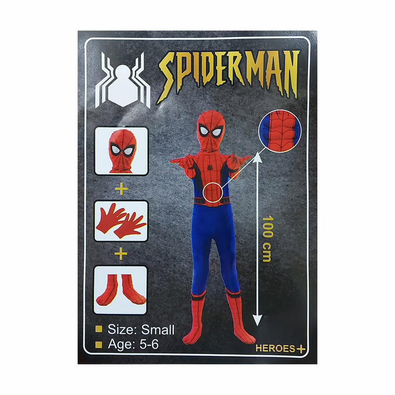 | سایر اجزا | شامل کلاه پارچه ای طرح مرد عنکبوتی، یک جفت دستکش، یک جفت جوراب |