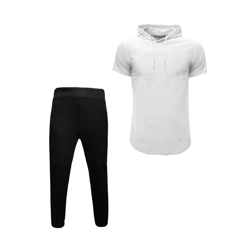 جزئیات تیشرت کلاهدار آستین کوتاه مردانه جنس نخی عالی یقه بنددار تن پوش شیک و اندامی بدون آبرفت و رنگ داد-=دارای سایز بندی مناسب چهار فصل لوگوها پرس حراراتی کره ای با طول عمربالا شلوار کمر کش دم پا کش جیب شلوار دارای زیپ. جنس شلوار نخی