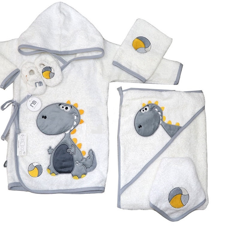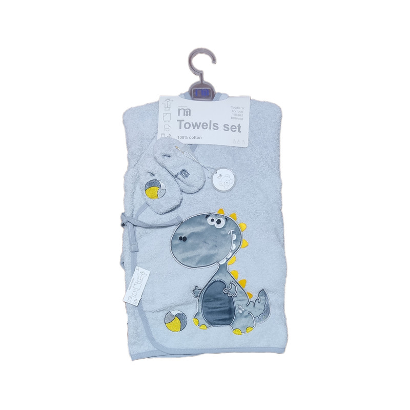 ست حوله 5 تکه mother care، ست حوله 5 تکه نوزادی کیمونو که شامل حوله کلاهدار، حوله کوچک، لیف ،پاپوش و دستمال می باشد. این ست حوله نوزادی دارای طرح گل دوزی دایناسور و توپ با مزه بوده که موجب جذابیت هر چه بیشتر این ست شده است و این طرح دایناسور یا توپ بر روی همه تکه ها خودنمایی می کنند. حوله کلاهداری در این ست وجود دارد که برای بعد از استحمام کاملا مناسب می باشد و با کلاه آن می توان سر و گردن کودک را خشک نمود. جنس این ست حوله نوزادی کاملا نرم و لطیف است و با پوست نوزاد دلبند شما سازگار خواهد بود. یک حوله کوچک، یک شنل زیبا ، یک عدد لیف و یک جفت پاپوش این ست زیبا را تکمیل می کند که به کمک آن می توانید لوازم بهداشت و حمام نوزاد دلبند خود را تکمیل نمایید. این ست یک گزینه ی ضروری برای کامل کردن سیسمونی دلبند شماست و خرید آن به عنوان هدیه برای خانواده ای که تازه صاحب فرزند شده اند نیز می تواند انتخابی هیجان انگیز باشد. این حوله برای رده سنی نوزادی تا دو سالگی مناسب است .