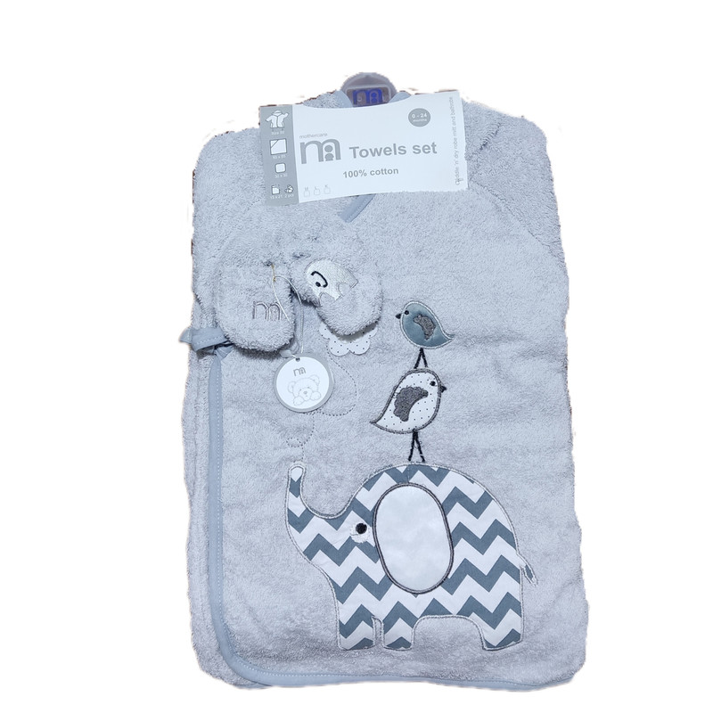 ست حوله 5 تکه mother care، ست حوله 5 تکه نوزادی کیمونو که شامل حوله کلاهدار، حوله کوچک، لیف ،پاپوش و دستمال می باشد. این ست حوله نوزادی دارای طرح گل دوزی فیل و جوجه با مزه بوده که موجب جذابیت هر چه بیشتر این ست شده است و این طرح فیل بر روی همه تکه ها خودنمایی می کنند. حوله کلاهداری در این ست وجود دارد که برای بعد از استحمام کاملا مناسب می باشد و با کلاه آن می توان سر و گردن کودک را خشک نمود. جنس این ست حوله نوزادی کاملا نرم و لطیف است و با پوست نوزاد دلبند شما سازگار خواهد بود. یک حوله کوچک، یک شنل زیبا ، یک عدد لیف و یک جفت پاپوش این ست زیبا را تکمیل می کند که به کمک آن می توانید لوازم بهداشت و حمام نوزاد دلبند خود را تکمیل نمایید. این ست یک گزینه ی ضروری برای کامل کردن سیسمونی دلبند شماست و خرید آن به عنوان هدیه برای خانواده ای که تازه صاحب فرزند شده اند نیز می تواند انتخابی هیجان انگیز باشد. این حوله برای رده سنی نوزادی تا دو سالگی مناسب است .