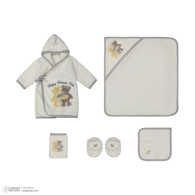 سایر توضیحات | 1 عدد حوله تن پوش به ابعاد 75x75 سانتی متر - 1 عدد حوله دورپیچ به 67x67 سانتی متر - 1 عدد حوله دست و صورت به ابعاد 23x23 سانتی متر - 1 عدد لیف حمام به ابعاد 18x13 سانتی متر - 2 عدد کفش حمام به ابعاد 10.5x7 سانتی متر |