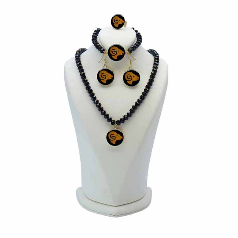 این ست کامل زیورآلات با سنگ انیکس، انتخابی ایده‌آل برای متولدین پرشور و جسور فروردین است. این ست شامل گردنبند، دستبند، گوشواره و انگشتر است. مهره‌های براق انیکس با رنگ مشکی عمیق و رازآلود خود، حس قدرت و اعتماد به نفس را القا می‌کنند. نماد طلایی رنگ با نقش برجسته ماه فروردین، که تصویر یک قوچ است، نمادی از شجاعت، رهبری و انرژی بی‌پایان شماست. این ست با طراحی شیک و مدرن، به زیبایی با هر استایلی ست می‌شود و در هر جمعی، شما را متمایز می‌کند. با انتخاب این ست نفیس، نه تنها یک مجموعه جواهرات با ارزش به مجموعه خود اضافه می‌کنید، بلکه جلوه‌ای از قدرت، جسارت و رهبری خود را به نمایش می‌گذارید. این ست، هدیه‌ای بی‌نظیر برای متولدین فروردین است که به دنبال بیان شخصیت خاص و منحصر به فرد خود هستند.