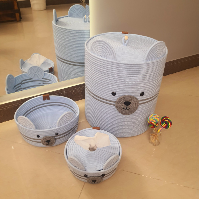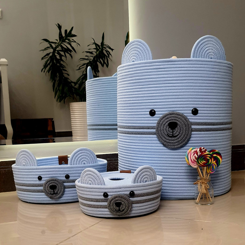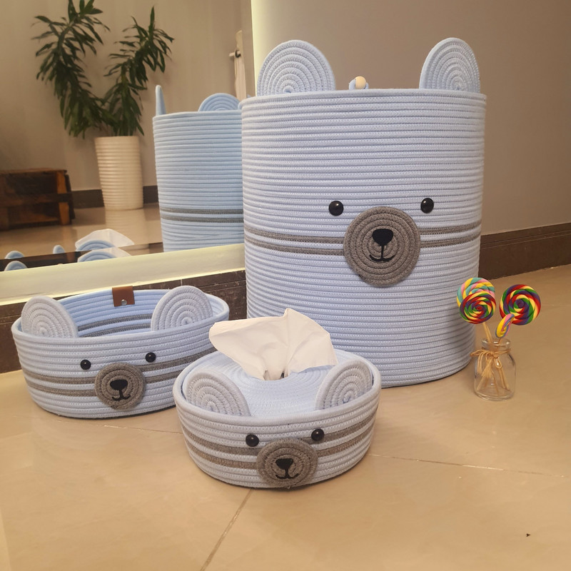 ست سبد اسباب بازی و وسایل کودک از ریسمان قیطان ساخته شده است، علاوه بر نرم بودن ایستایی بالایی دارد. ظاهر مدرن و کیفیت بالای محصول آن را متمایز کرده است. این محصول کاملا طبیعی و دوستدار محیط زیست است و هیچ قسمت آسیب زایی برای کودک شما ندارد. سبد بزرگ مناسب اسباب بازی یا لباس چرک است و دارای درب میباشد.