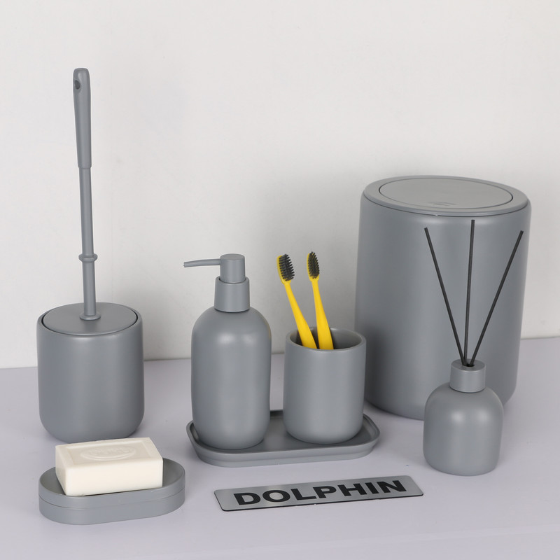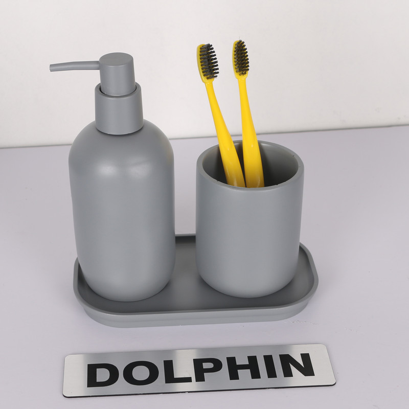 ست سرویس بهداشتی دکوراتیو دلفین از پلی رزین درجه یک ساخته شده است. ست دلفین تشکیل شده از، جای صابون، جای مسواک، سطل، توالتشور، جای مایع، و ظرف خشبو‌کننده به همراه سینی می‌باشد. از مزایای ست رومیزی دلفین ضد زنگ و ضد باکتری بودن است. ست دلفین با طراحی مینیمال مناسب برای هر دکوری می‌باشد. این محصول مناسب برای هدیه، جهیزیه و ایجاد یک دکور زیبا و‌ایده آل می‌باشد.