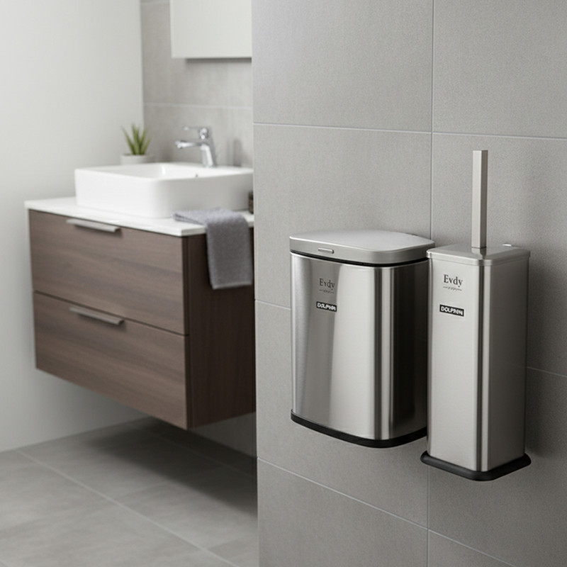 سطح صیقلی استیل و رنگ نقرهای براق، جلوهای تمیز، لوکس و هماهنگ با شیرآلات استیل و فضای مدرن حمام ایجاد میکند. برند دلفین همواره نماد کیفیت و طراحی اروپایی بوده و این ست با رعایت ظرافت در جزئیات، پاسخگوی نیاز کسانی است که به نظم، بهداشت و زیبایی توأمان اهمیت میدهند.