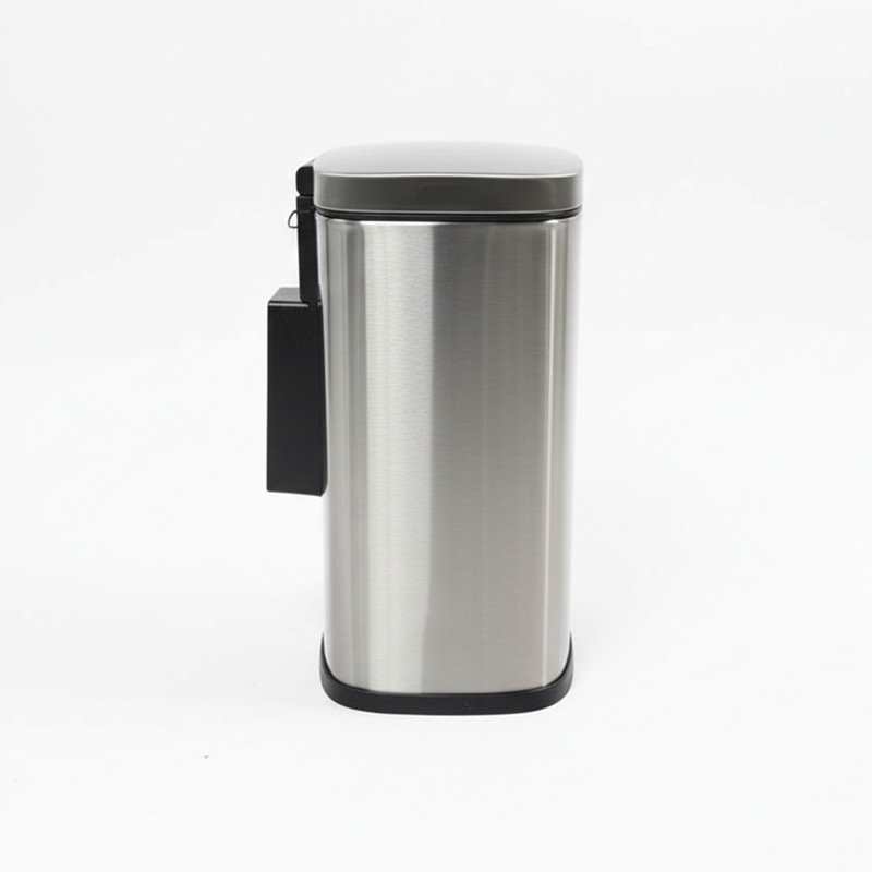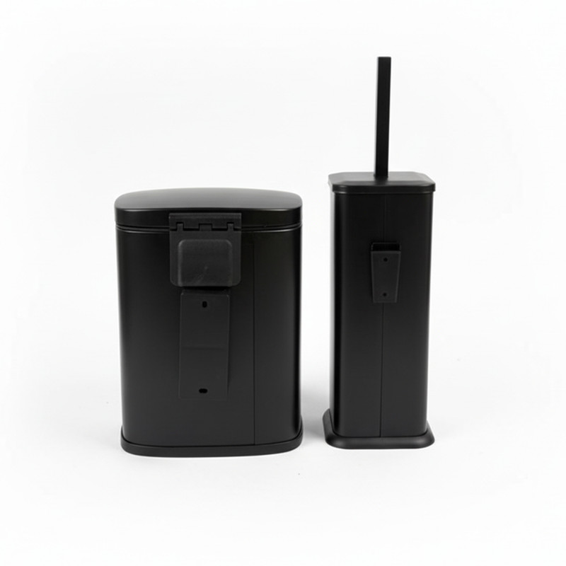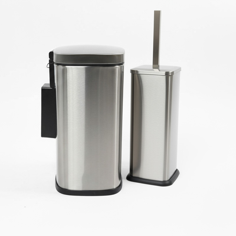 سطل زباله این مجموعه با ارتفاع ۲۵ سانتیمتر، عرض ۱۹ سانتیمتر و عمق ۱۵ سانتیمتر طراحی شده و به دیوار نصب میشود تا فضای کف آزاد بماند و نظافت محیط آسانتر انجام گیرد. درب نرم بازشو باعث عملکرد بیصدا و روان میشود و ظاهر براق آن هماهنگی چشمگیری با اجزای لوکس سرویس بهداشتی دارد.