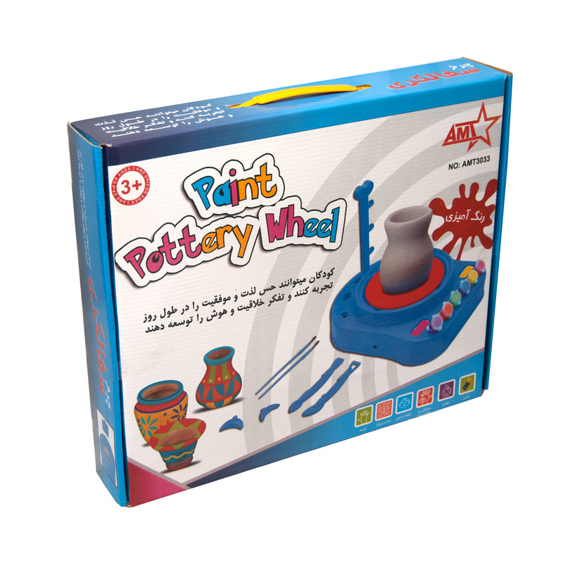 سفالگری یکی از قدیمیترین صنایع بشر است و ظرفهای سفالی، شاید یکی از قدیمیترین ساختههای آدمی باشد. چرخ سفالگری کودک، محصولی با طراحی و کارایی بسیار جذاب و متفاوت برای کودکان است. کودکان میتوانند با کار کردن با آن حس لذت و موفقیت را در طول روز تجربه کنند. این اسباببازی با درگیر کردن ذهن کودک و ایجاد هماهنگی بین چشم و دست او سبب افزایش خلاقیت میشود. کار با چرخ سفالگری همچنین سبب بالابردن دقت و تمرکز کودک و ایجاد حس اعتماد به نفس در او میگردد. چرخ سفال گری ای ام تی مدل AMT3033 با استفاده از 3 عدد باطری متوسط 1.5 ولت با قابلیت تنظیم سرعت در دو حالت تند و کند کار میکند. این محصول بعد از انجام کار به راحتی قابلیت تمیز شدن را دارد. در درون بسته این محصول خاک و رنگ وجود دارد که کودک شما با استفاده از آن ها می تواند زمینه شکوفا کردن استعداد خود را آغاز کند. این محصول در سایز استاندارد مناسب کودکان و وزنی سبک با طراحی منحصربفرد و خاص از پلاستیک فشرده که هیچ گونه ضرری برای کودکان شما ندارد ، ساخته شده است. چرخ سفال گری ای ام تی مدل AMT3033 ساخت و ساخت در ایران می باشد.