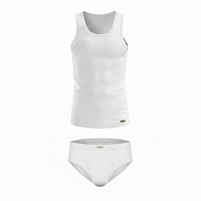 ست شورت و زیرپوش رکابی یقه فراک مردانه پنبینه مدل نخ پنبه خالص سوپر کامپکت ارگانیک