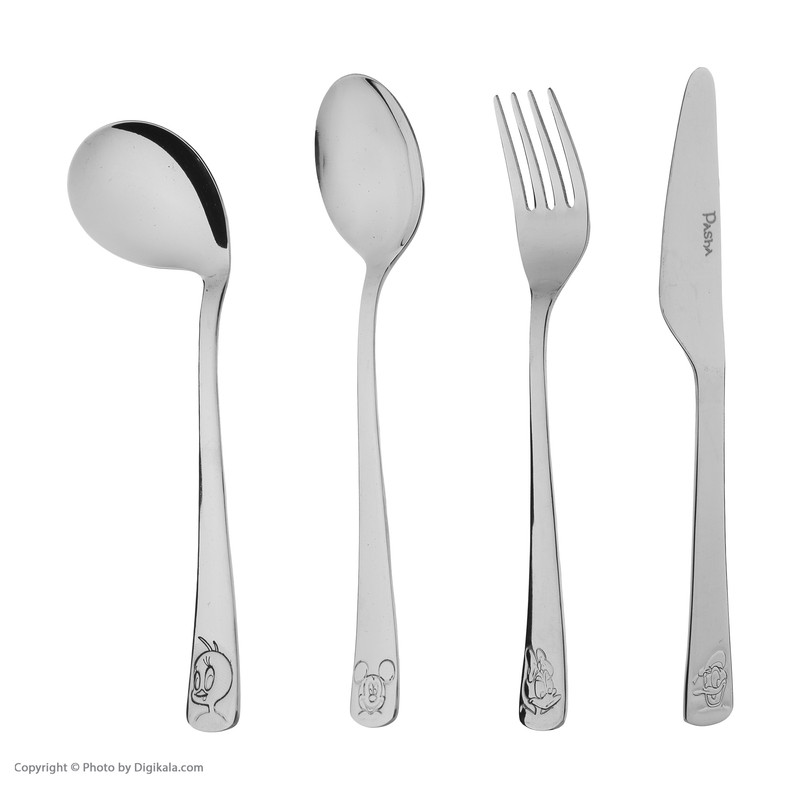 سایر توضیحات | - دارای یک قاشق غذاخوری به طول دسته: 11 سانتیمتر و وزن 20 گرم - دارای یک چنگال غذاخوری به طول دسته: 11 سانتیمتر و وزن 25 گرم - دارای یک کارد به طول دسته: 9 سانتیمتر و وزن 25 گرم - دارای یک قاشق مخصوص کودک (قاشق کج) به طول دسته: 11 سانتیمتر و وزن 25 گرم |