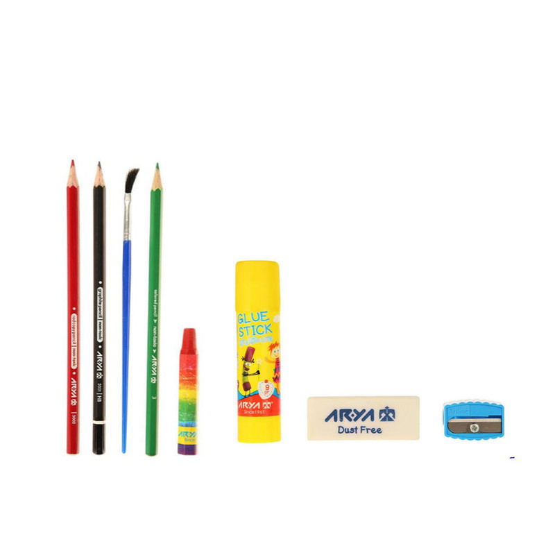 محتویات بسته | مداد , پاک کن , تراش , ماژیک , کیف , چسب |